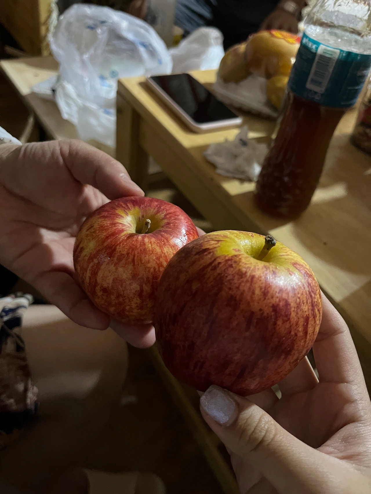 과일 종류는 배, 사과, 키위, 망고 등 다양했다. 몽골은 과일도 대부분 수입이라 가격이 꽤 비쌌다. 막내인 내가 과일을 깎았는데, 미니 맥가이버 칼로 사과 껍질이 안 끊어지게 한 큐에 깎기 신공을 보여드렸다! 방에서 다 같이 수다를 떨며 놀다가 바깥 하늘을 살펴보았다. 구름이 걷히고 있었다.