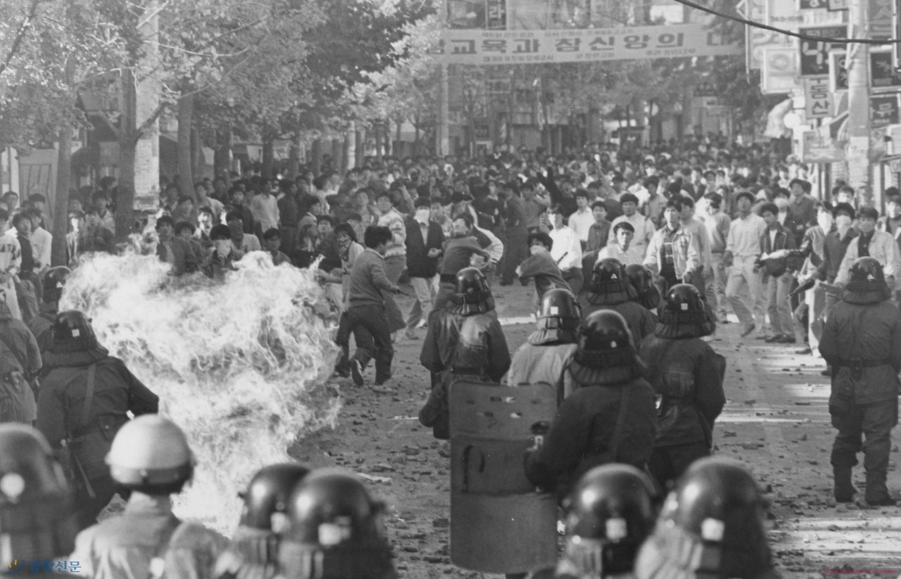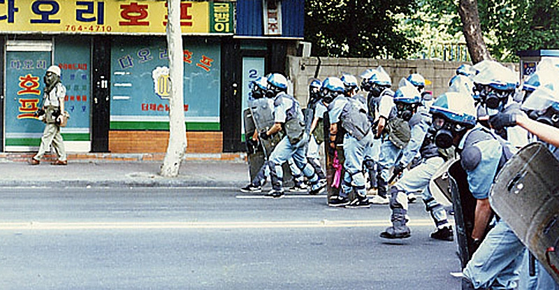 하지만 어린 시절의 나도 '데모'에 대한 기억은 아직도 생생하다. 홍대입구 근처에 살았는데 신촌 로터리에서부터 동교동 로터리를 지나 서교동 사거리까지 데모가 항상 끊기지 않았던 지역이라 한다. 우리 동네에서 데모는 그저 일상에 지나지 않았다. 여름에 창문을 열어놓으면 최루탄 냄새가 스멀스멀 기어들어와 눈물을 흘리곤 했으니까..