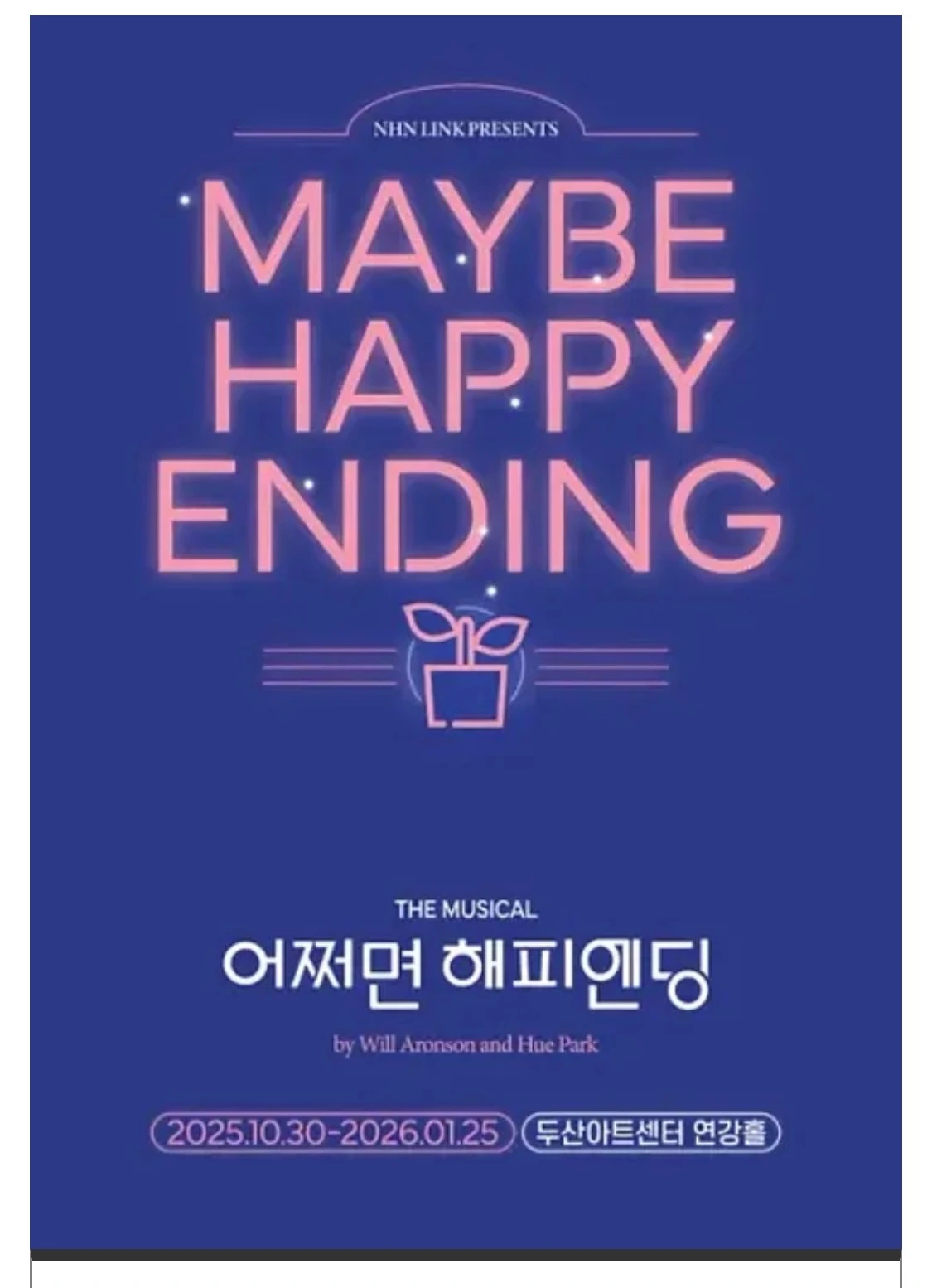 한창 ‘슬기로운 의사생활 2’를 우연히 보다 너무 재미있어서 1시리즈도 다 보게 되었다. 드라마에 이렇게 빠지게 된 것은 오랜만이었다. 그러다 전미도가 뮤지컬 배우라는 것과 정문성 배우와 함께 뮤지컬에서 부른 ‘사랑이란’이라는 노래를 알게 되었다. 그 노래를 반복해서 듣다 보니 자연스레 노래가 나온 뮤지컬에도 관심을 갖게 되었다. 그렇게 알게 된 ‘어쩌면 해피엔딩’이라는 뮤지컬을 차일피일 미루며 언젠가 봐야지 하고만 있었는데…