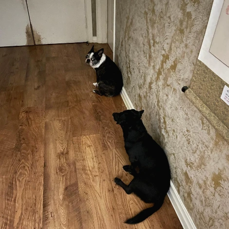 내 임무는 집에서 강아지들을 잘 돌보기다. 베란다에 배변패드를 바로바로 갈아주고, 밥그릇과 물그릇이 비지 않도록 챙긴다. 아침, 저녁으로 산책을 시킨다. 오래 걷다가 한참 벤치에 앉아서 멍 때리다가 들어온다. 평소 손발을 닦기 전에는 현관에서 움직이지 않는데 두 마리가 가족들이 돌아왔는지 온 집안을 돌아다니며 체크한다. 덕분에 집안일이 늘었다.