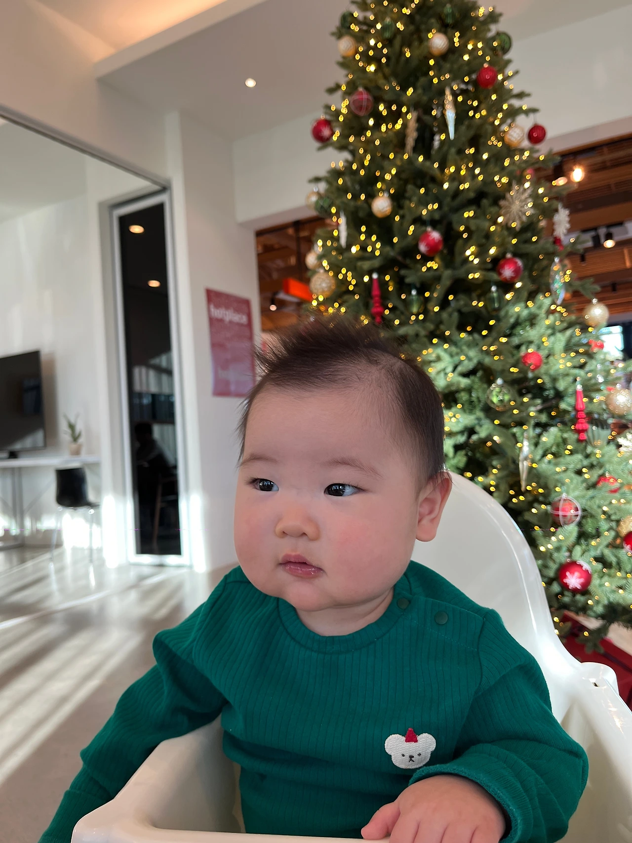 처음으로 카페에 비치된 유아 의자에 앉았다.