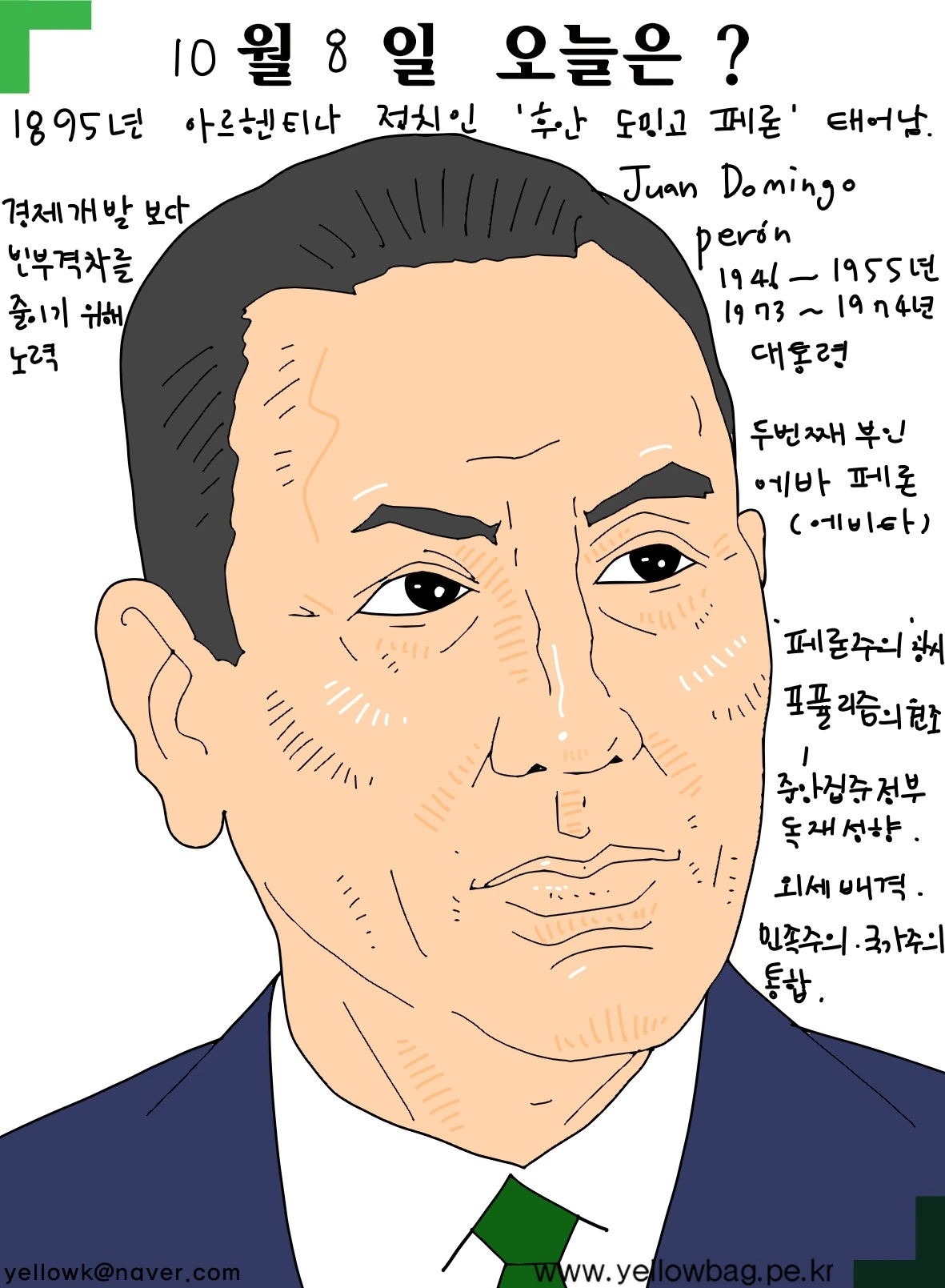 10월8일 아르헨티나 대통령 후안 도밍고 페론 태어남