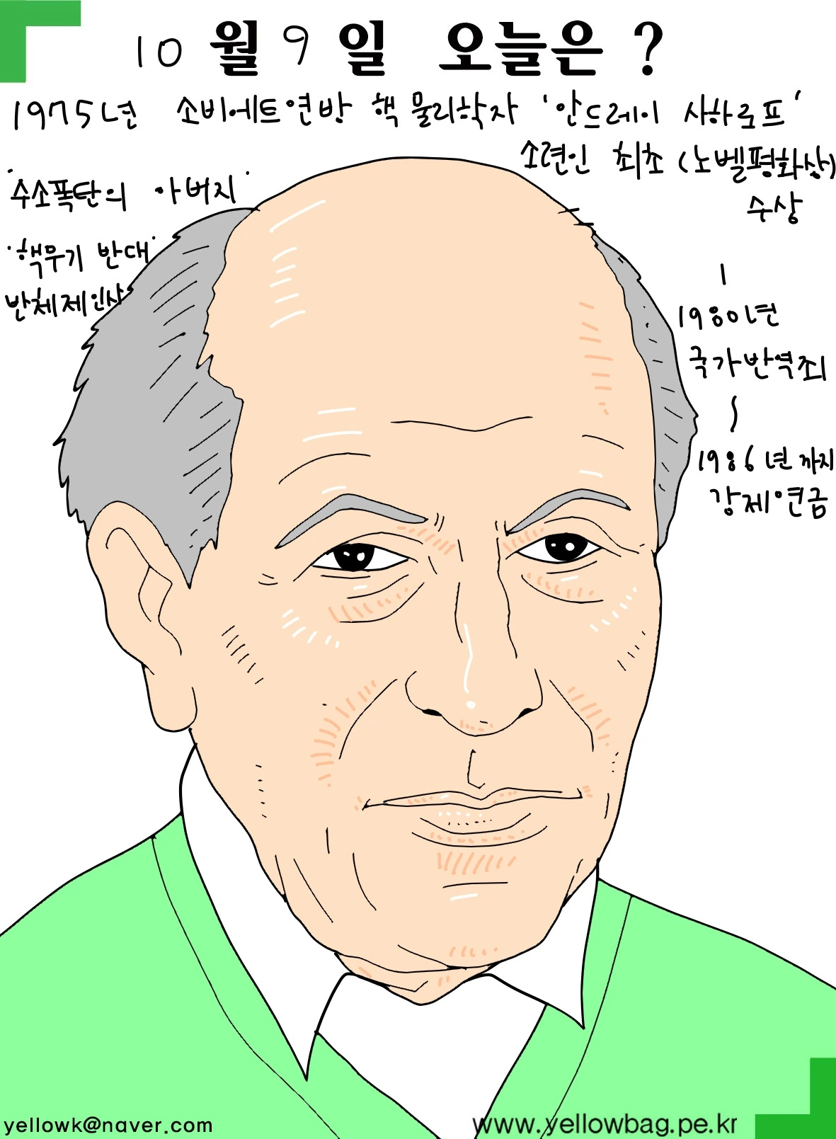 10월9일 소련 핵물리학자 안드레이 사하로프 노벨평화상