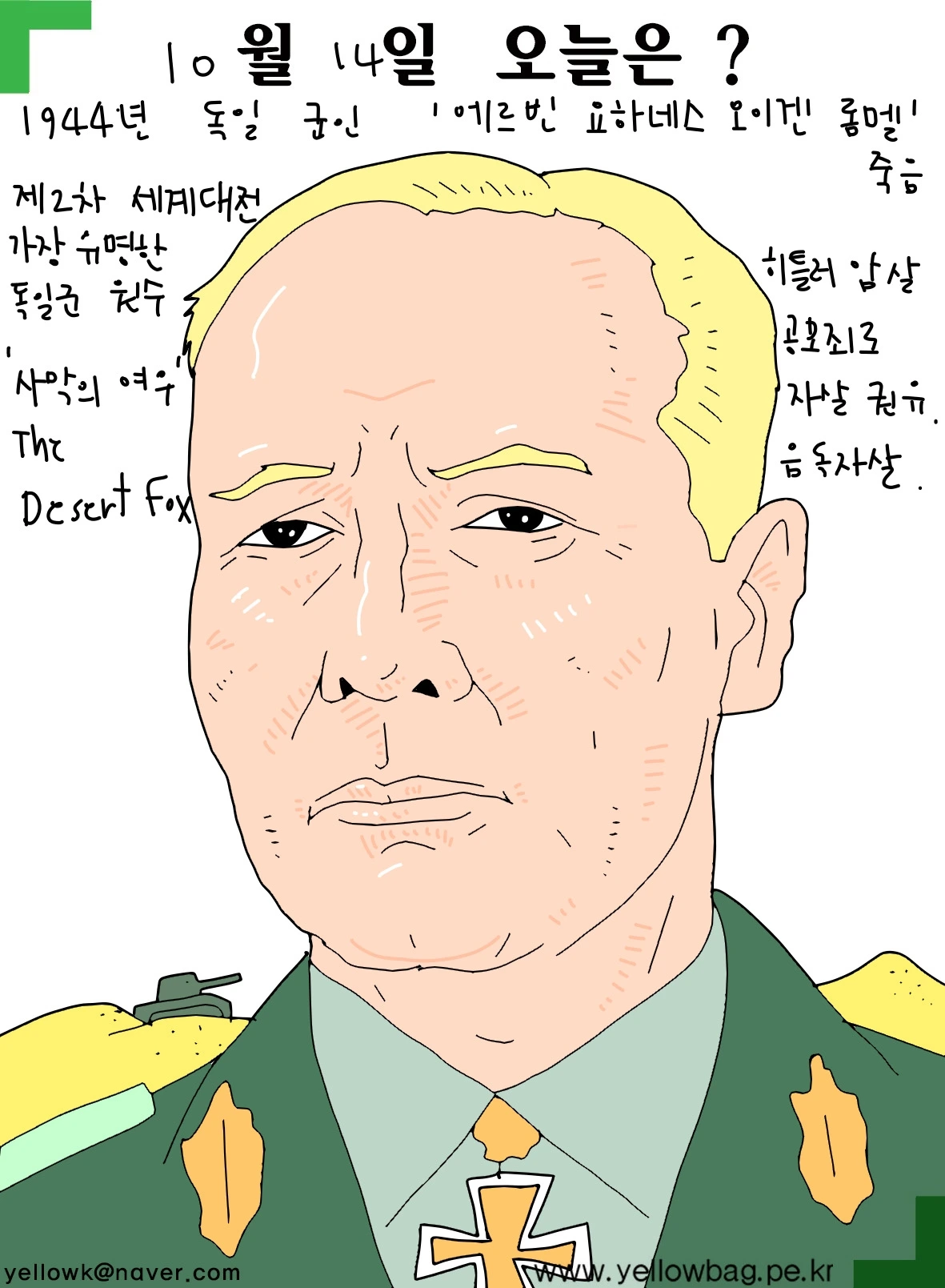 1944년 10월14일 독일 군인롬멩 죽음. 2차대전 가장 유명한 독일군 장교 사막의 여우라 불림. 히틀러 암살 공모로 자살권유. 음독자살.
