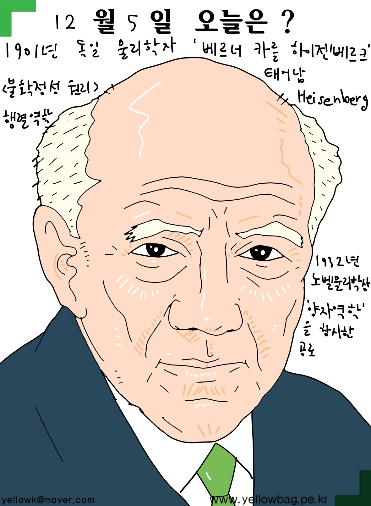 1901년12월5일 독일 물리학자 베르너 카를 하이젠베르크 태어남 행렬역학 불학정성 원리. 1932년 노벨물리학상 수상. 양자역학을 창시한 공로