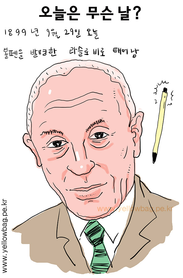 1899년 9월 29일 오늘 볼펜을 발명한 라슬로 비로 태어남 그는 헝가리에서 기자였는데 사용하던 만년필에서 잉크가 자주 새어 나와 불편해서 볼펜을 만들었다고 한다. 신문 잉크는 끈적이고 점도가 높아 잘 흘러내리지 않고 빨리 마르는 것을 보고 신문잉크를 작은 관에 넣고 끝에 쇠구슬을 달아 글씨를 쓰게 했다. 1938년에 볼펜을 발명하였고, 2차 세계대전 독일의 유대인 학살을 피해 남미로 이주하여 1943년 아르헨티나에서 발명특허를 냈다.