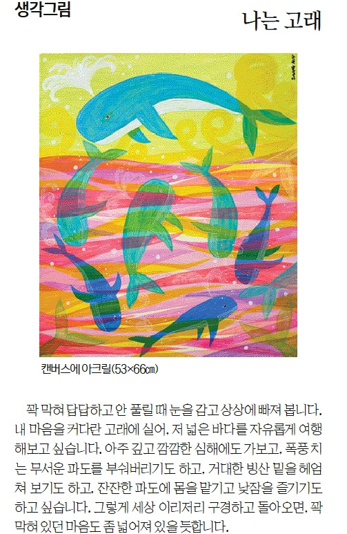 내 마음을 커다란 고래에 넣고, 저 넓은 바다를 아무 거칠 것 없이 자유롭게 다니고 싶습니다.