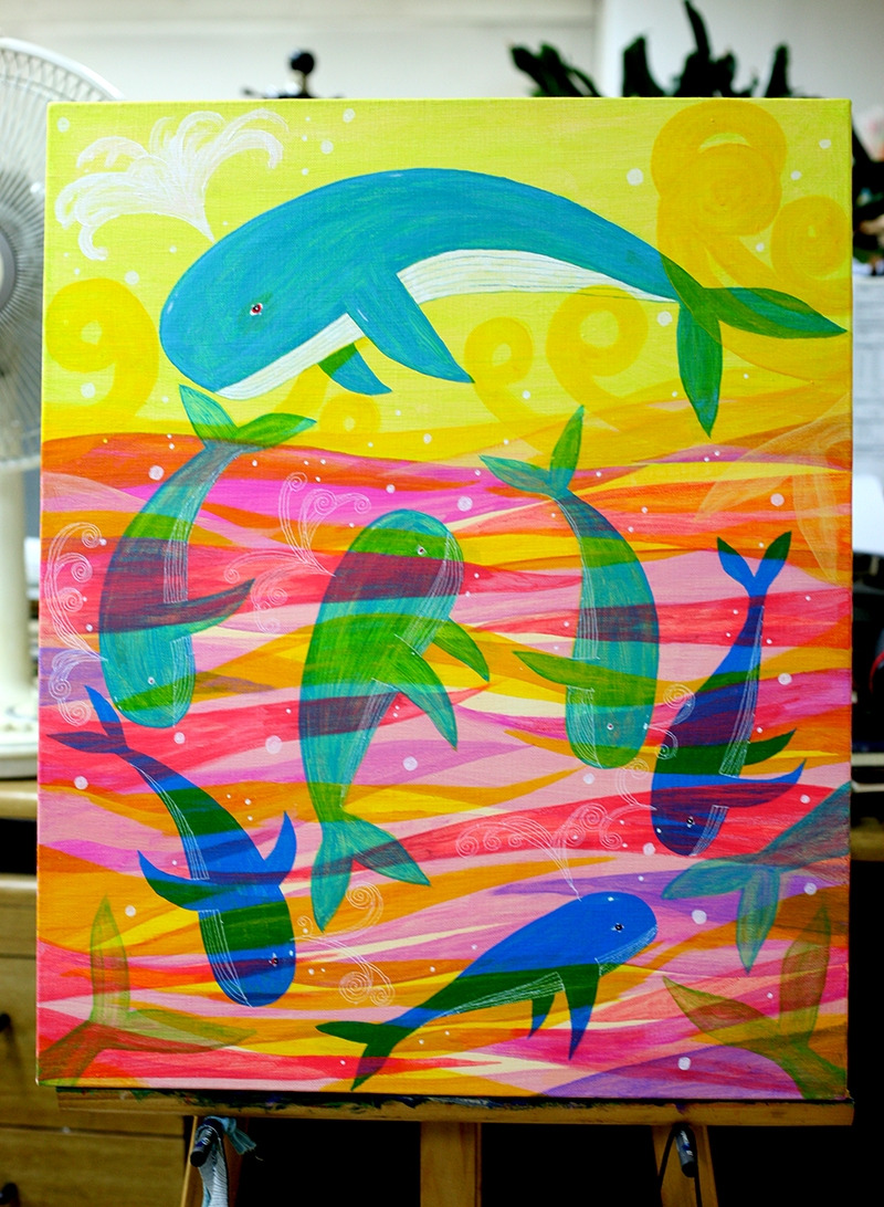 꽉 막혀 답답하고 안 풀릴 때 눈을 감고 상상에 빠져 봅니다. 내 마음을 커다란 고래에 실어, 저 넓은 바다를 자유롭게 여행해보고 싶습니다. 아주 깊고 깜깜한 심해에도 가보고, 폭풍 치는 무서운 파도를 부숴버리기도 하고, 거대한 빙산 밑을 헤엄쳐 보기도 하고, 잔잔한 파도에 몸을 맡기고 낮잠을 즐기기도 하고 싶습니다. 그렇게 세상 이리저리 구경하고 돌아오면, 꽉 막혀 있던 마음도 좀 넓어져 있을 듯합니다.