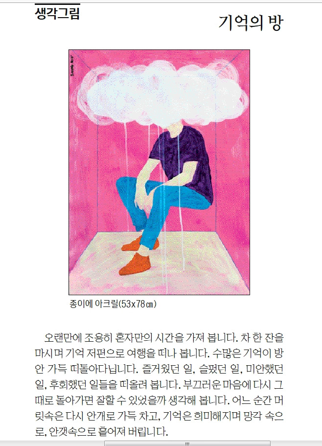 오랜만에 조용히 혼자만의 시간을 가져 봅니다. 차 한잔을 마시며 기억 저편으로 여행을 떠나 봅니다. 수많은 기억들이 방안 가득 떠돌아다닙니다. 즐거웠던 일, 슬펐던 일, 미안했던 일, 후회했던 일들을 떠올려 봅니다. 부끄러운 마음에 다시 그때로 돌아가면 잘할 수 있었을까 생각해 봅니다. 어느 순간 머릿속은 다시 안개로 가득 차고, 기억은 희미해지며 망각 속으로, 안갯속으로 흩어져 버립니다.