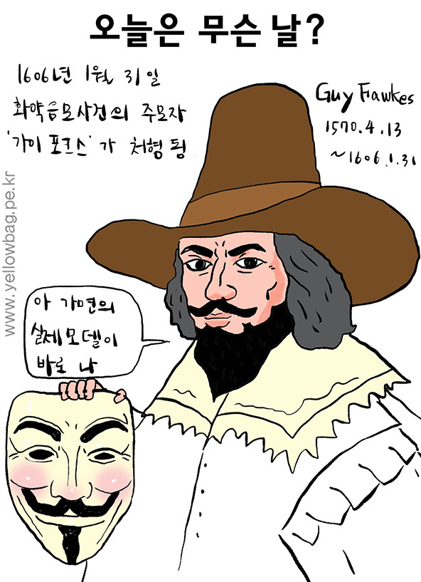 화약 음모 사건은 영국 왕 제임스 1세를 국회의사당에서 폭약으로 암살하려다 밀고자 때문에 미수에 그친 사건이다. 매년 11월 5일이 되면 영국에서 불꽃놀이가 열린다. 가이 포크스 데이라고 불리며, 그가 의회 의사당을 폭파시켜 영국 왕과 대신들을 한꺼번에 몰살시키려 했던 화약 음모 사건을 이 실패한 것을 기념하기 위함이다. 왕의 무사함을 축하하기 위해 불꽃놀이를 했으나, 훗날 사람들은 그의 실패를 아쉬워하면서 대신 불꽃을 터뜨리는 의미로도 불꽃놀이를 벌였다. '녀석'을 뜻하는 영어단어 'Guy'는 그의 이름에서 유래되었다. 가이는 처음에는 조롱의 의미로 사용되었으나 세월이 지나면서 친구 동료 일반적 남자의 의미를 지니게 되었고, 요즘은 사람들, 당신들 의 의미까지 추가되었다.