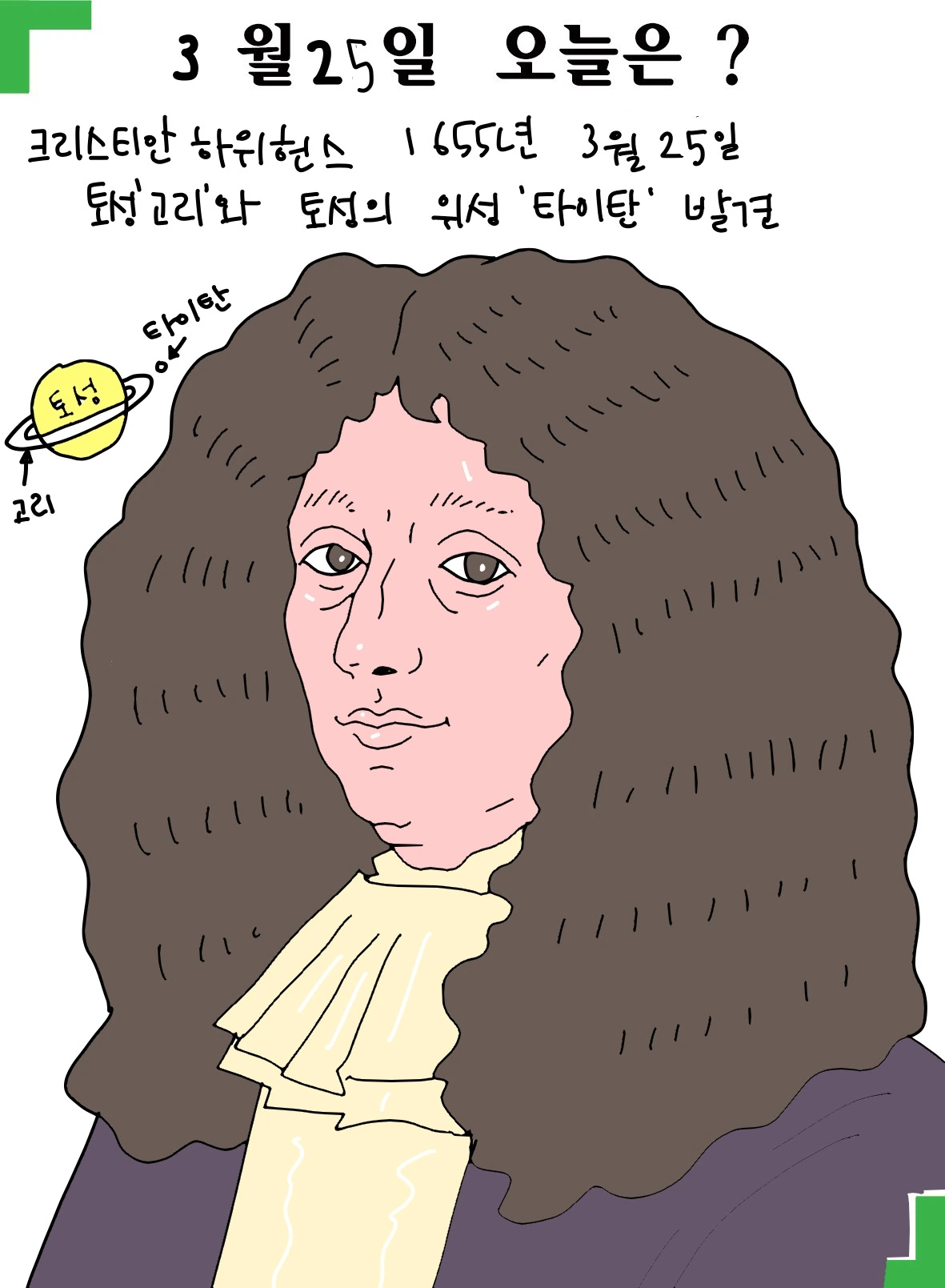 크리스티안 하위헌스 (1629년 4월 14일 ~ 1695년 7월 8일)는 네덜란드의 수학자, 물리학자이자 천문학자. 1655년 3월25일 형인 콘스탄테인 하위헌스와 함께 망원경의 개량을 통해 토성의 위성인 타이탄 및 토성의 고리를 발견하였다. 그는 어려서부터 데카르트의 영향을 받았는데, 실험이나 관측을 매우 중요시하였으며 또한 철저한 성격의 소유자였다고 전해진다. 물리학에서 처음으로 공식을 사용한, 최초의 이론 물리학자로 여겨지기도 한다. 또 그는 50배율 상당의 망원경으로 토성을 관찰한 결과 작은 천체가 토성 주위를 돌고 있음을 확인했다. 3개월 간의 지속된 관측 끝에 그는 이 천체가 토성의 위성이라는 결론을 내렸다. 최초로, 갈릴레오 갈릴레이가 토성이 희미한 테두리가 있었음을 그의 망원경을 통해 발견을 했다. 하지만 하위헌스가 처음으로 구형의 행성 주위에 고리가 있음을 해석해냈다. 그는 처음에 토성이 기이한 모양의 고체라고 생각하였지만, 이내 1656년 토성의 고리가 모래들로 이루어져있다고 결론을 내렸다. 하위헌스의 토성에 대한 이런 발견 업적들을 기려, 1997년 10월 15일에 토성 탐사를 목적으로 발사된 탐사선에 그의 이름을 붙여 카시니-하위헌스 호라고 하였다. 이 탐사선은 토성에 착륙하기까지 그 위성인 타이탄의 자료를 보내 왔으며, 현재 토성을 공전하고 있다.