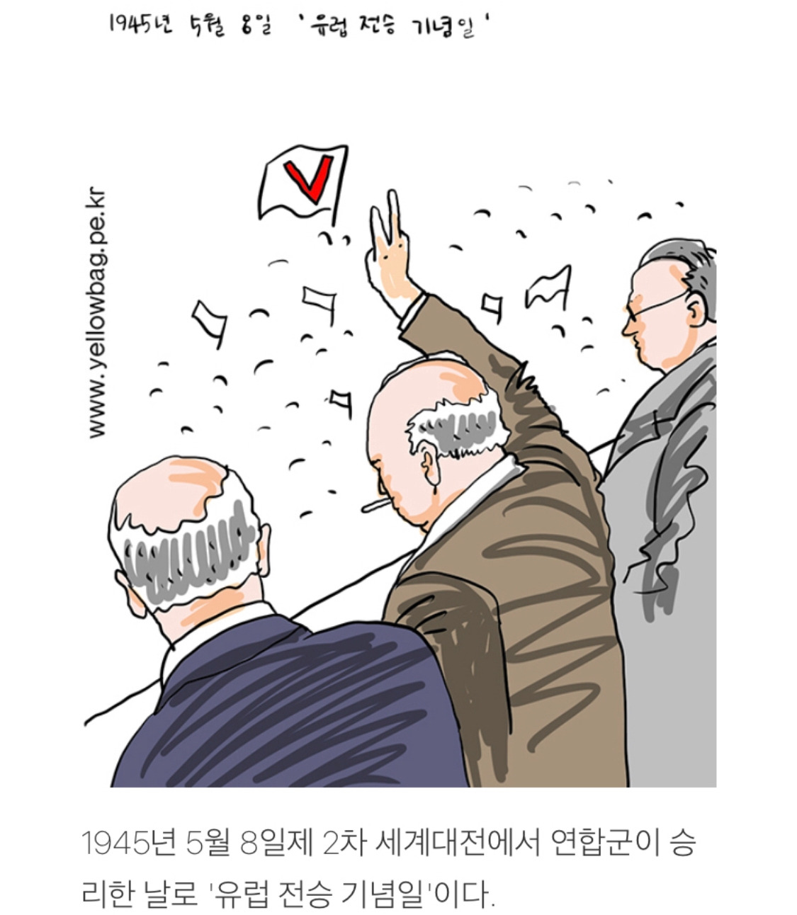 나치 독일이 연합군에 무조건 항복하고 아돌프 히틀러의 나치 독일이 멸망한 날이다. 영국 연방은 5월 7일, 러시아는 5월 9일을 승전 기념일로 하고 있다. 이 날은 런던에서부터 뉴욕까지 전 세계인들이 전쟁이 끝났음을 환호하였다. 런던에서는 트라팔가 광장과 버킹엄 궁전에서 여왕과 원스턴 처칠이, 미국에서는 약 한 달 전 사망한 루스벨트 대통령을 대신에 트루먼이 참석해 고 루스벨트 대통령에게 승리를 바쳤다. 우리나라의 8월 5일 광복절처럼 유럽의 많은 나라들이 5월 8일을 승리의 날을 공휴일로 하고 있다.