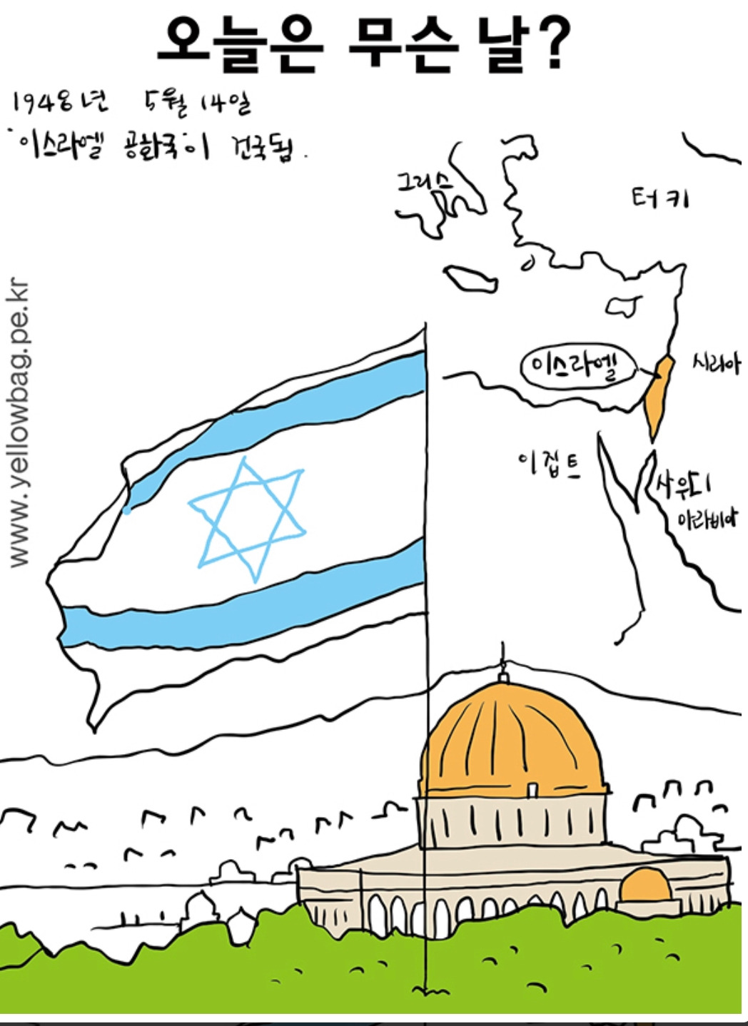 1948년 5월 14일 이스라엘 공화국이 건국되었다.