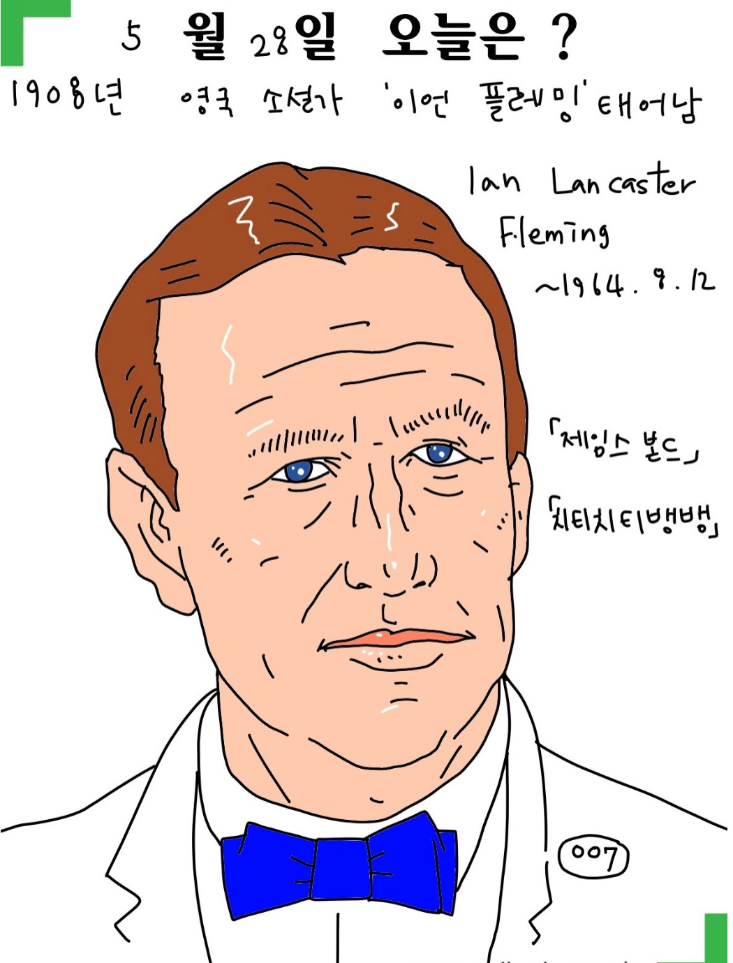 1908년 제임스본드 007시리즈로 유명한 이언 플레밍 태어남. 그는 기자였고 영국해군 정보부 첩보 분석가로 활동했으며 전후 신문사에 근무하다 추리소설 첫 작품 카지노 로열에서 제임스 본드를 주인공으로 내세웠다. 이 책이 성공하여 그후 007시리즈책 총14권을 집필하였다. 그의 책은 거의 다 영화화 되었다. 그의 책 중 동화책 치티치티뱅뱅도 유명하다.