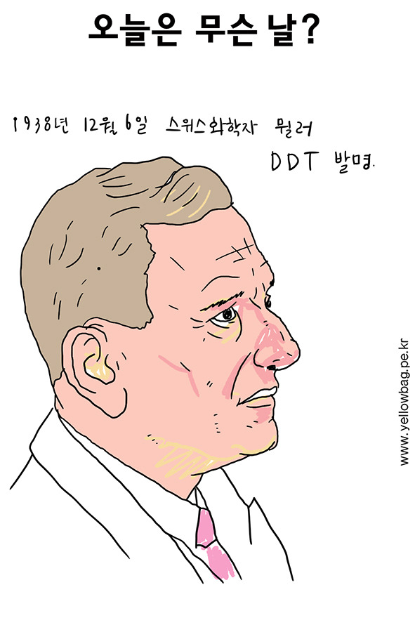 1938년 12월 6일 스위스 화학자 파울 헤르만 뮐러 DDT 발명함. 처음 나왔을 때 곤충학 역사상 이처럼 안심하고 사용할 수 있는 약품은 없었다고 발표했다. 그러나 후에 이 약의 부작용이 나타나 지구 생태계의 재앙 물질로 추락했다.