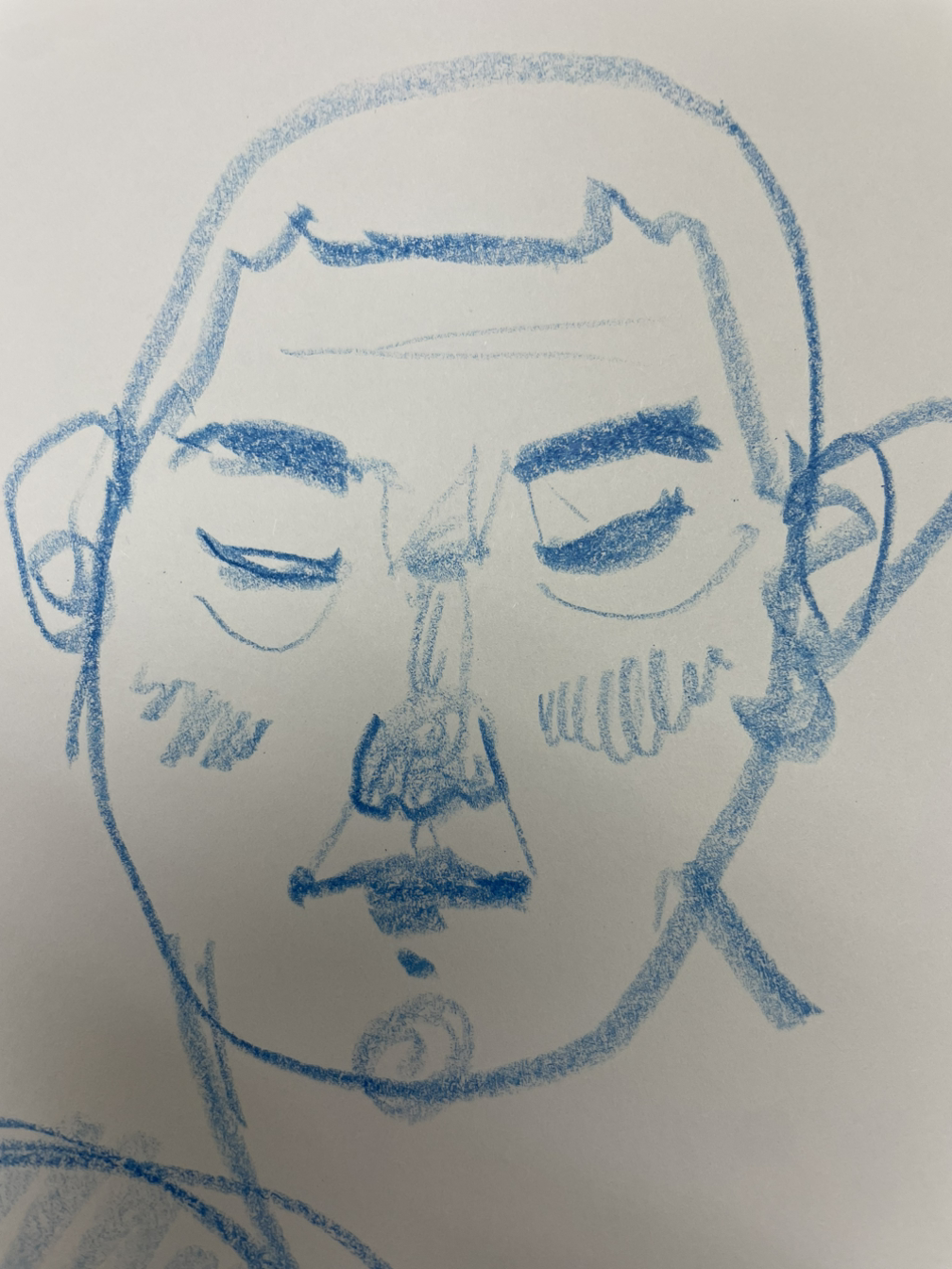 남자누드모델 얼굴만 그려 봄. 다 다른 사람 같네. 큰일이군