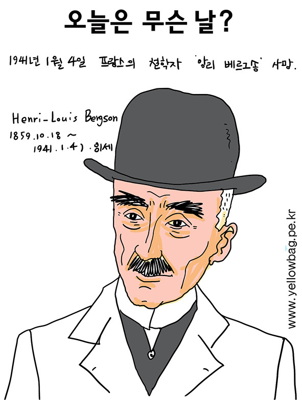 1941년 1월 4일 프랑스 철학자 앙리 베르그송 사망.그는 현대 철학의 초석을 마련한 거장으로 그의 사유는 화이트헤드, 하이데거, 들뢰즈 같은 거장들로 이어지게 되었다. 그는 1927년 노벨문학상을 수상하였고, 유네스코의 전신은 국제 지적 협력 국제위원회 의장도 역임했다. 베르그송의 철학의 전체적 성향이나 분위기를 알려면 그의 저서 <사유와 운동>을 읽어보면 좋다.