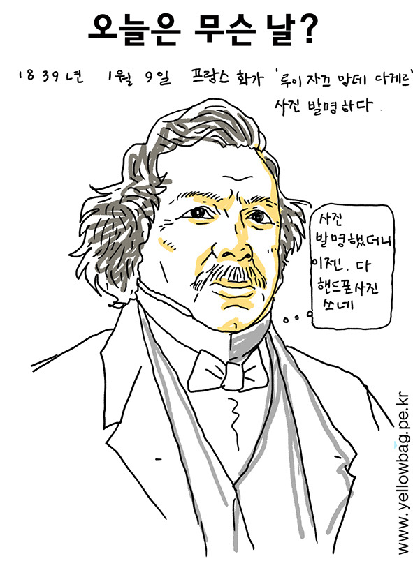 1839년 1월 9일 프랑스 화가, 발명가 '루이 자끄 망데 다게르' 최초의 사진을 발명했다. 그는 대형 투명한 스크린에 알프스 산과 같은 웅장한 자연을 그려 특수한 조명을 이용해 보여주는 디오라마로 유명한 사람이었는데 그도 밑그림 그릴 때 카메라 옵스쿠라를 사용하고 있었다. 그는 사진 기술을 계속 연구하여 은도금판에 사진은 감광하여 정착할 수 있는 기술을 만들었는데 다 게 레오 타입이라 불렀다. 이것이 최초의 사진이 되었다. 몇 년 전까지만 해도 필름 카메라가가 많이 쓰였지만, 이젠 거의 쓰지 않고 있고, 하물며 디카도 무겁다고 안 쓰고, 휴대폰 카메라가 가장 많이 이용되고 있다. 기술의 발전은 사람들의 예상을 뛰어넘고, 사람들의 생활 방식도 바꾸고 있다.