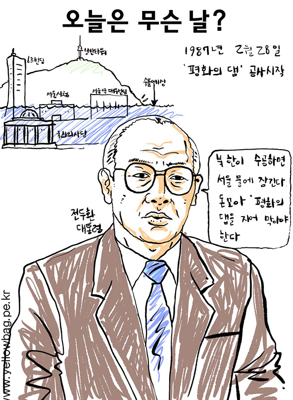 1987년 2월 28일 전두환 정권이 북한의 금강산댐의 수공에 대비한다고 '평화의 댐' 공사를 시작했다. 1989년 1월에 1차 완공하였고 그 뒤 2002년 2단계 증축 공사하여 2005년 10월에 완공하였다. 건설과정에서 전두환 정권은 북한의 수공을 과장하고 불안감을 조성하여 댐을 정치적으로 이용한 것이 밝혀져 대국민 사기극이라는 비판을 받았다. 공사비는 1700억 원이고 이중 639억여 원은 국민성금으로 충당하였는데 모금 과정에서 횡령 사례가 발생하였고, 전두환 정권은 기업의 매출에 따라 최소 700만 원에서 최대 10억 원을 강제로 할당하였다고 한다.--------------희대의 대국민 사기극으로 밝혀진 평화의 댐은 군사정권을 유지하기 위한 북한을 이용한 안보작전을 사용하였다. 이런 북한을 이용한 불안 조성은 그 이후로도 보수정권들이 계속 사용하고 있다. 평화의 댐은 사기극으로 완성되었지만, 지금은 홍수예방을 하고 있기는 하다.