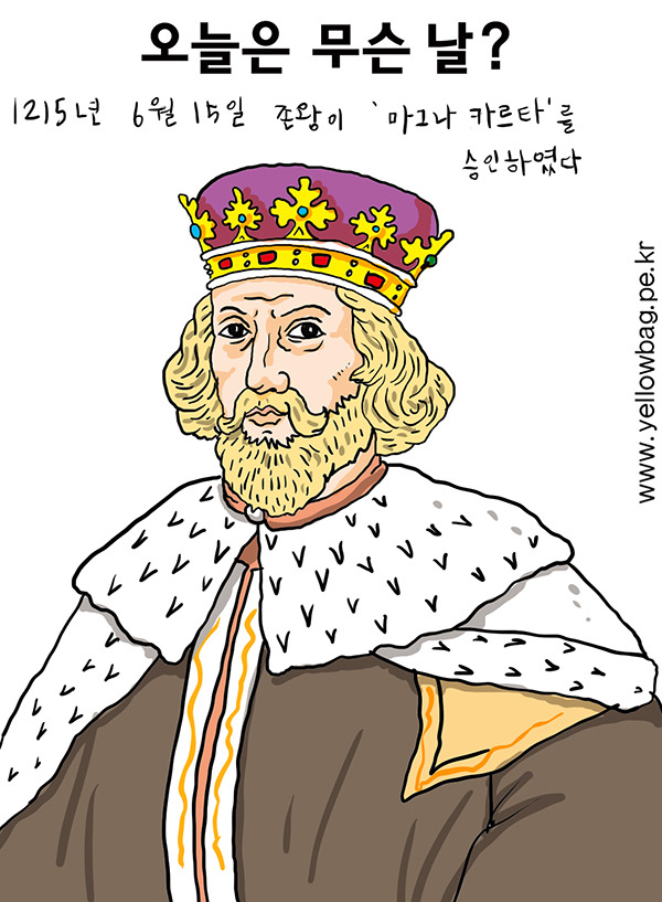1215년 6월 15일 영국의 존 왕이 '마그나 카르타'를 승인하였다.