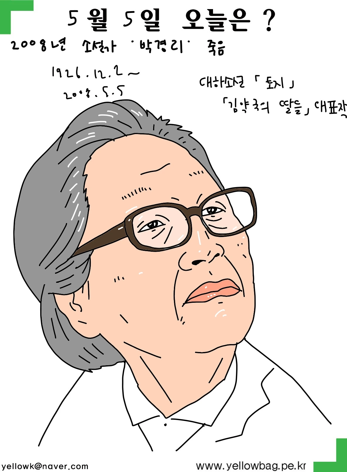 2008년 소설가 박경리 선생 죽음. 그녀의 대표작은 대하소설 <토지>, <김약국의 딸들>이 있다. 그녀는 1969-1994년 까지 25년간 토지를 집필하였다.