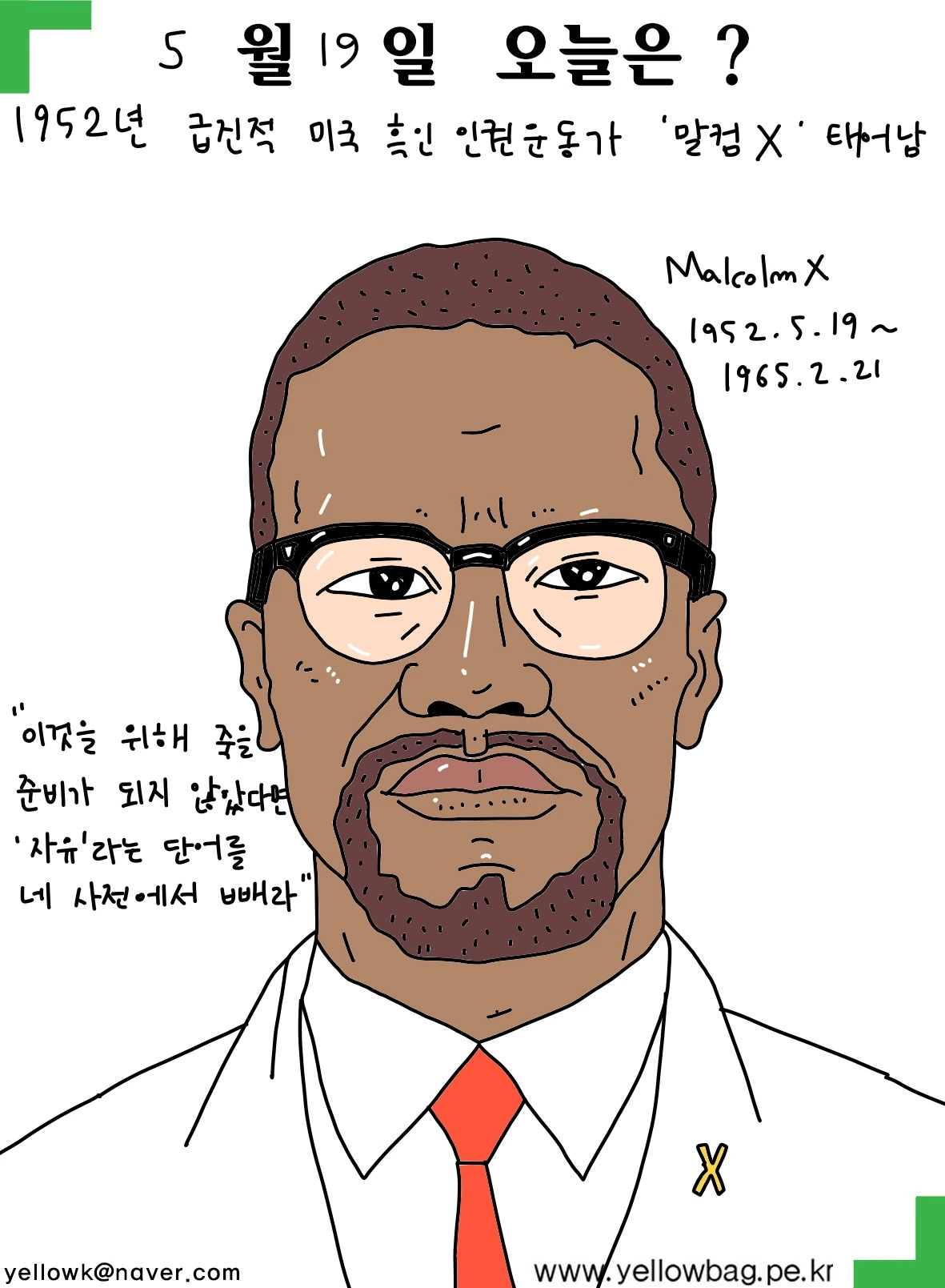 1952년 미국 급진적 흑인 인권 운동가 맬컴 엑스 태어남.
