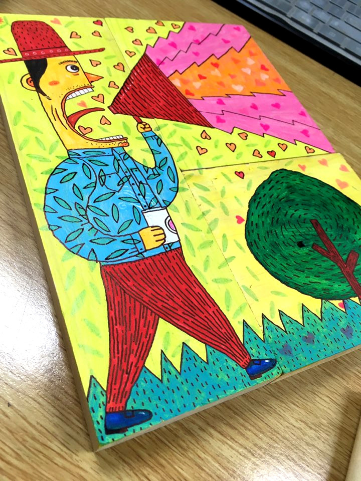 나무에 아크릴 펜 (21x27cm)