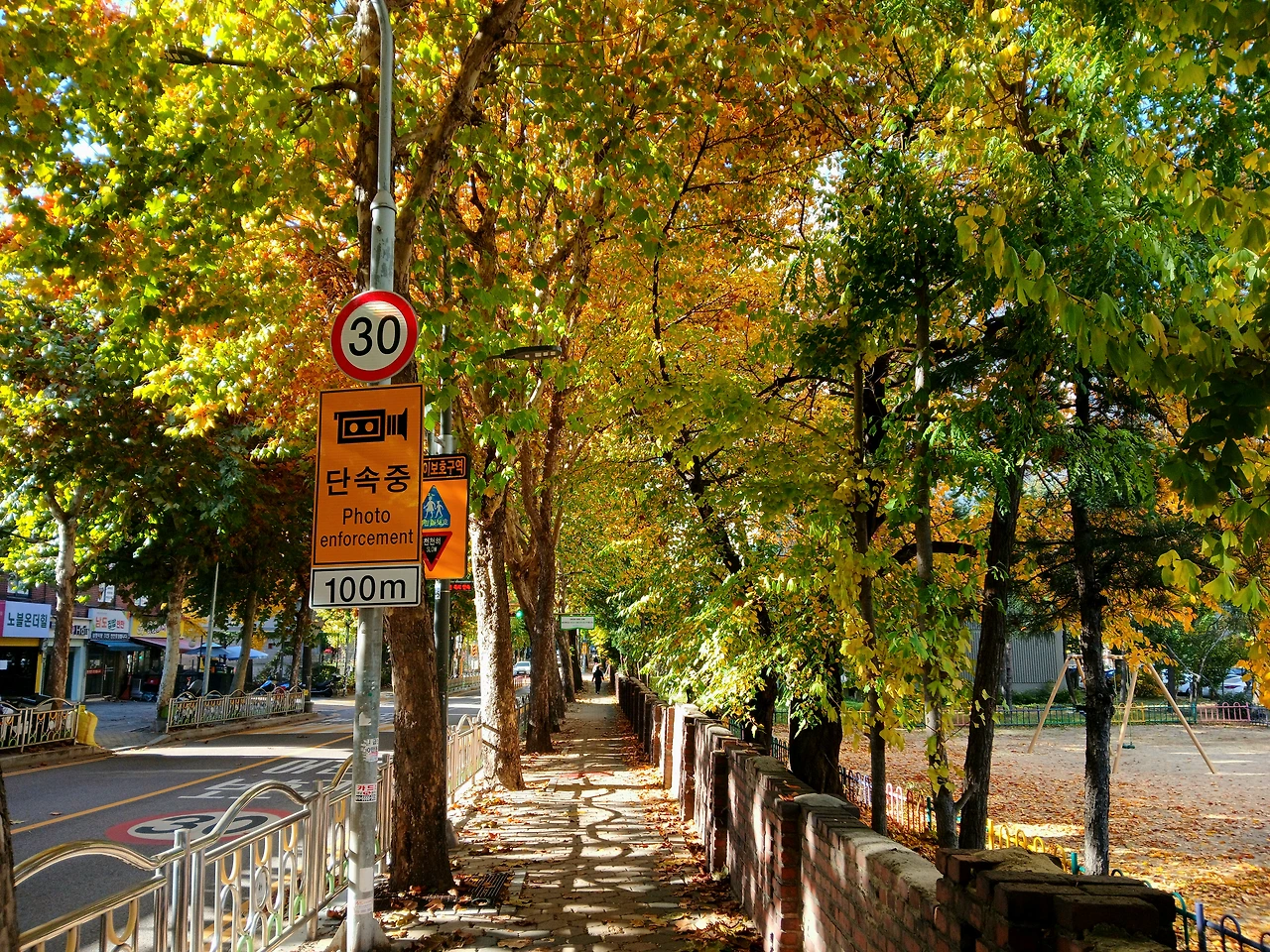 돌아가는 길에 다시 만난 구축 아파트 앞 도로.