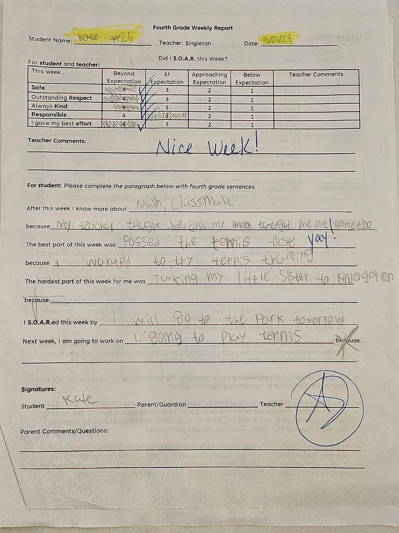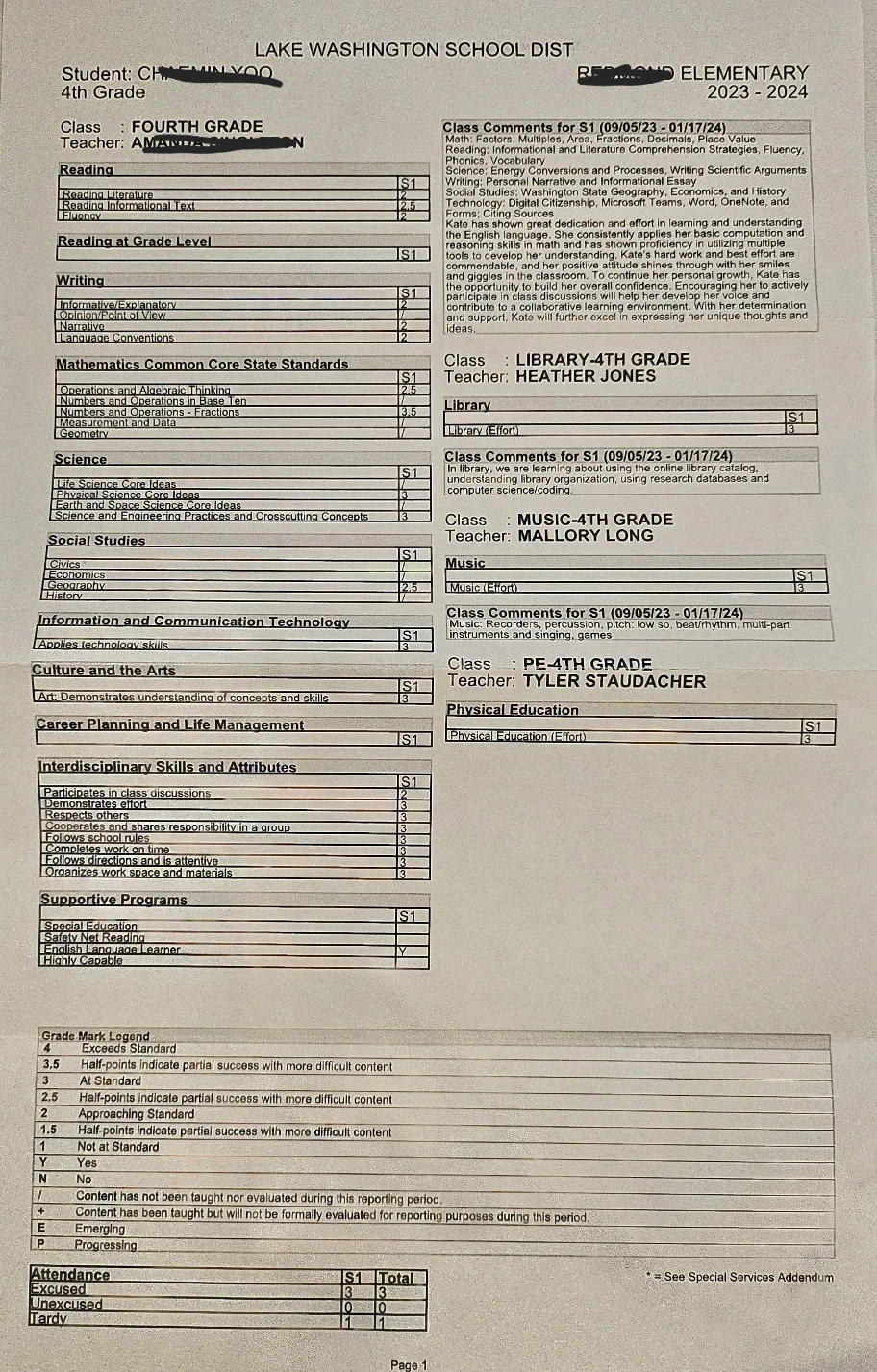 늘 느끼는 것이지만 미국의 교육은 완전히 자발적인 시스템이다. 본인의 의지가 있어야 발전 가능한 시스템이다. 목마른 자가 우물을 파는 것. 그래도 파는 만큼 물을 얻을 수 있다. 지식적인 성장보다는 학습에 임하는 성실한 자세, 시간을 관리하는 법을 배우는 것 같다. 내가 학창시절 했던 것처럼 시험기간에만 벼락치기한다고 좋은 점수를 받을 수 없다. 꾸준히 성실하게 공부하고 능동적으로 관리를 해온 학생들이 좋은 점수를 받게 된다. 여러 시행착오가 있었지만 지금까지 잘 적응해 주고 여태 모든 과목에서 올 A를 받은 첫째가 참 기특하다.