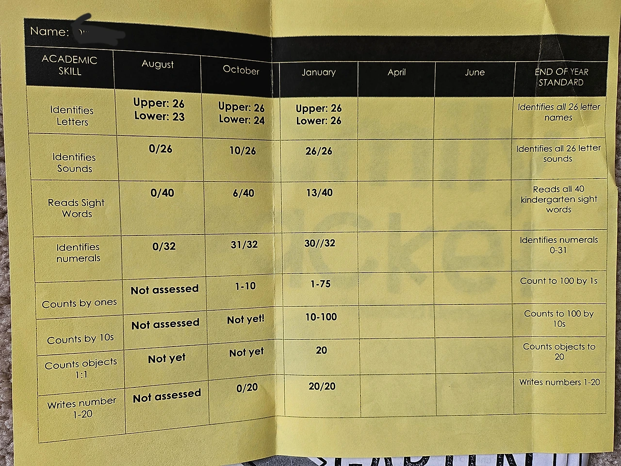 우리 막내는 알파벳도 모르고 한글도 모르고 0개 국어 상태로 미국 유치원에 입학했다. 여기서는 만 5세가 되면 유치원에 입학한다. 입학을 하자마자 반 배정이 되고 담임선생님과 면담시간이 있었다. 미국에서는 선생님과 부모님의 회의를 굉장히 중요하게 여긴다. 보통 부모가 모두 참석하여 아이의 교육에 대한 진지한 대화를 나누게 된다. 미국에서는 처음인 학부모 상담 회의를 가는 길은 긴장이 되었다. 선생님과 커뮤니케이션이 잘 되어야 할 텐데 걱정이 되기도 하였다. 막내의 담임 선생님은 유치원 교육의 목표와 커리큘럼에 대한 이야기를 해주셨고 궁금한 점을 물어보라고 하셨다. 아이가 영어를 몰라서 적응하는 것이 우려된다는 말씀을 드렸더니 웃으시며 걱정하지 말라고 하신다. 미국에서 나고 자란 아이들도 알파벳이 모두 완성되지 않은 채 유치원에 입학하는 아이들이 많고 여러 문화적 배경을 가진 아이들이 다양하므로 괜찮을 거라고 안심시켜 주셨다. 선생님의 자신감 넘치는 모습에서 믿음이 생겼다. 금발의 파란 눈의 예쁜 유치원 선생님을 우리 막내는 엘사를 닮았다며 좋아했다. 그렇게 막내는 10개월 간 알파벳 대문자, 소문자부터 시작해서 차근차근 영어를 배워왔다. 3개월마다 아이가 얼마나 성장하는지를 수치로 적어 집으로 보내주는데 알파벳과 간단한 단어들, 숫자를 배우고 있었다. 단어를 배울 때는 sound로 배우는 것이 인상적이었다. 예를 들어 STOP이라는 단어를 배울 때 스펠링 하나씩 발음소리를 내며 익히는 방법이다. "S-T-O-P (스트오프) STOP(스톱)" 이렇게 말이다.
