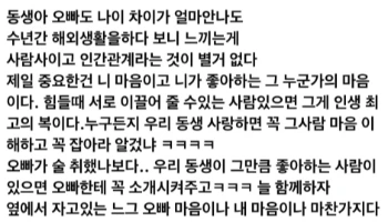 '고마워, 오빠들 덕에 내 삶의 순간순간 힘을 얻고 살아갈 수 있었어'