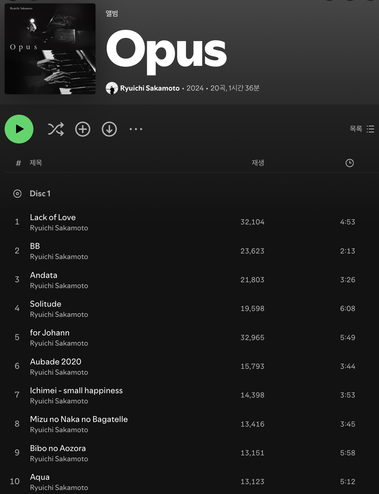 OPUS는 사카모토의 생전 마지막 공연을 담은 영화 이름인데요. 이제 그 음반까지 발매가 된 것입니다.