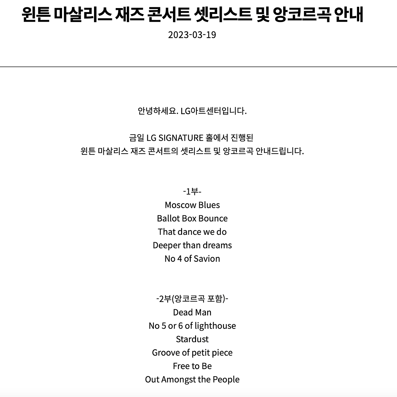 그 첫 번째 공연이 바로 윈튼 마살리스 공연이었다.