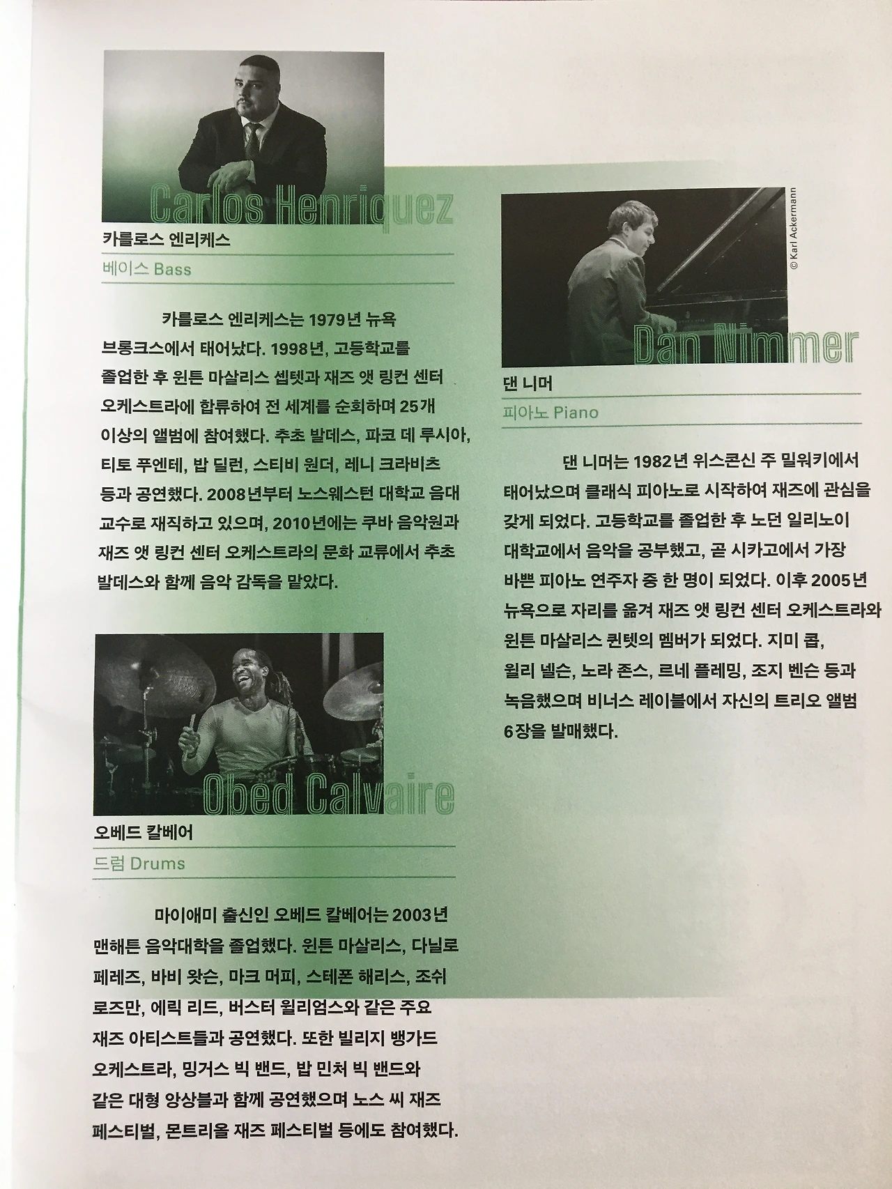 피아노의 댄 니머와, 베이스의 카를로스 엔리케스를 함께 볼 수 있다.