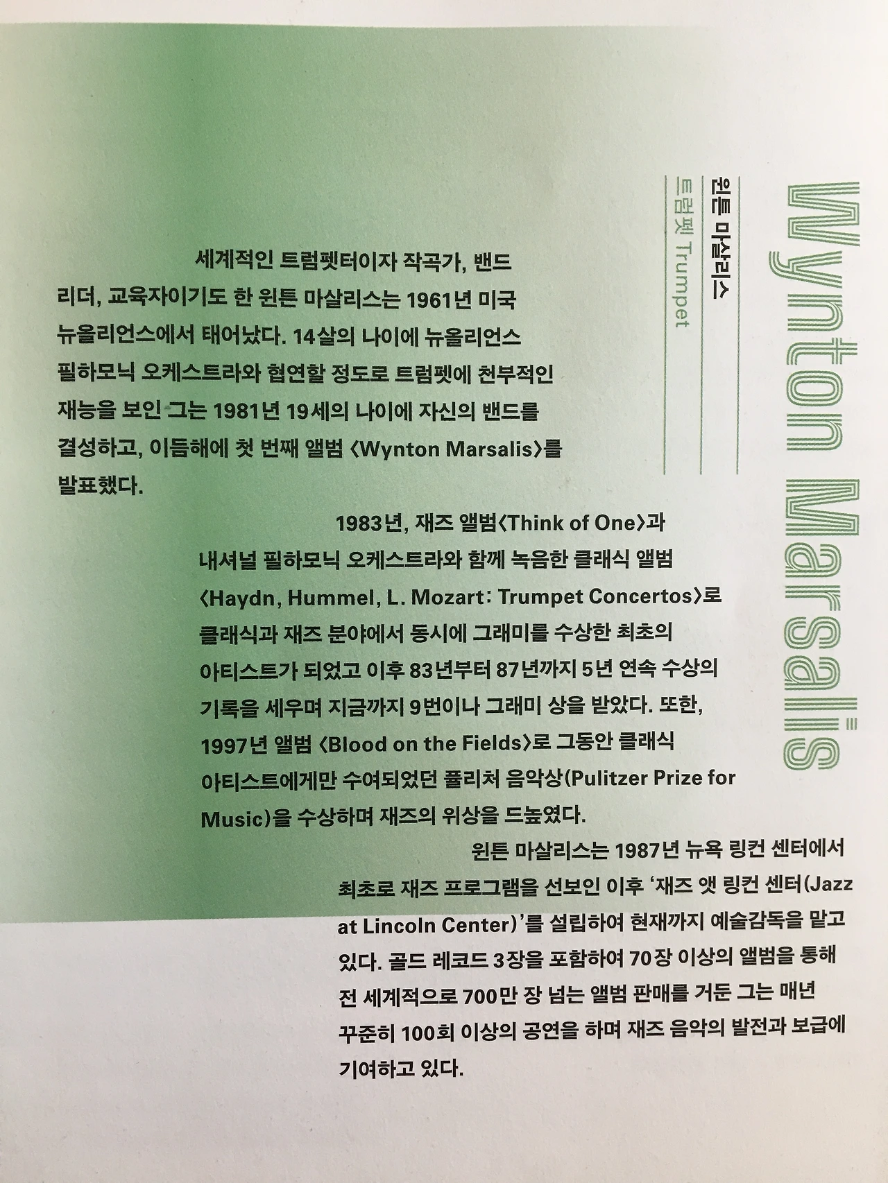 제일 최근 들었던 윈튼 마살리스의 연주는
