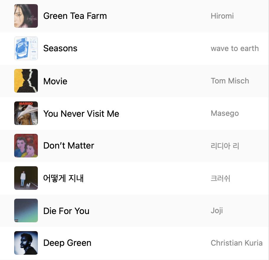 음악들도 일기처럼 그날에, 그 순간에만 누리고 싶은 곡들이 있어요.