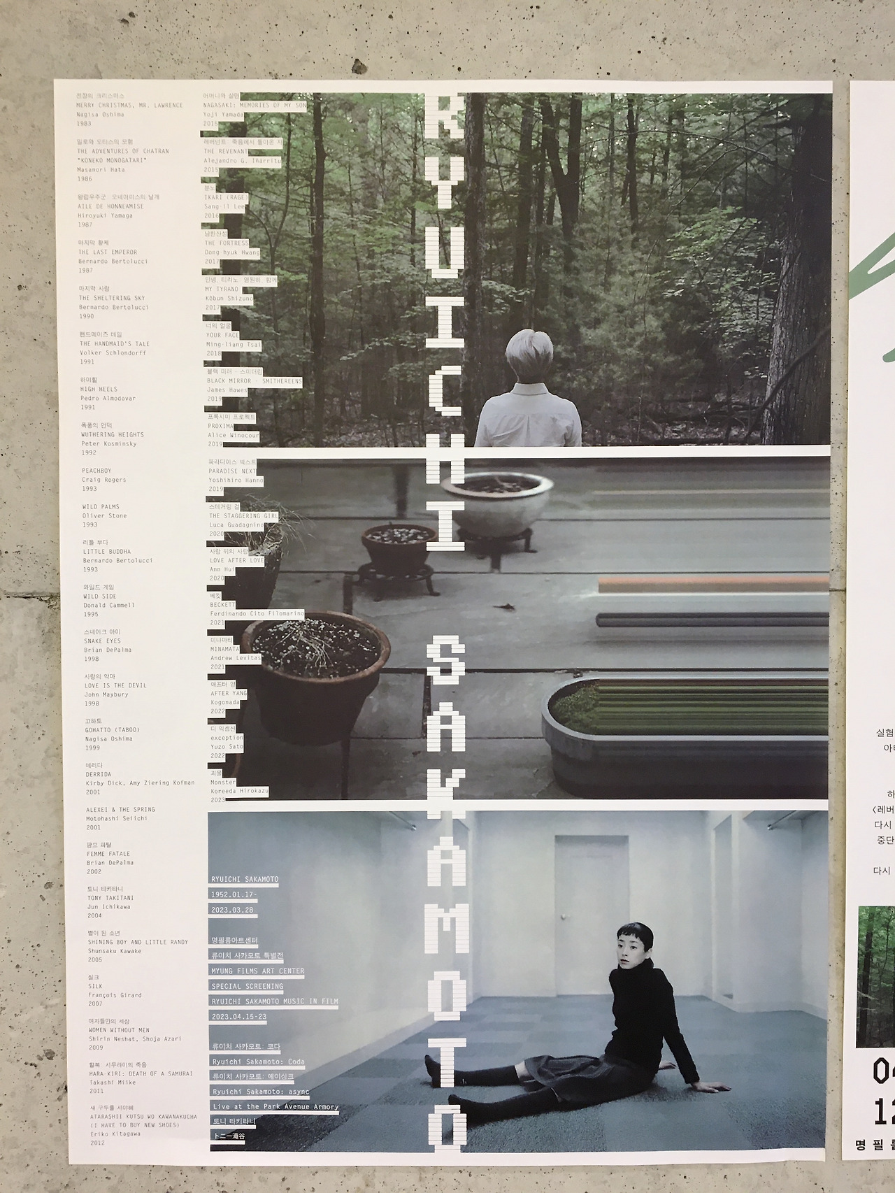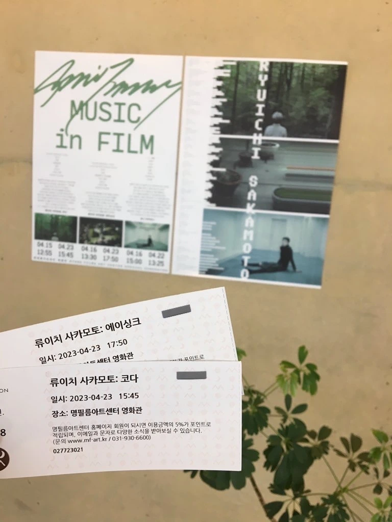 4월 23일 명필름 아트센터 영화관에서 류이치 사카모토 특별전을 관람했다.