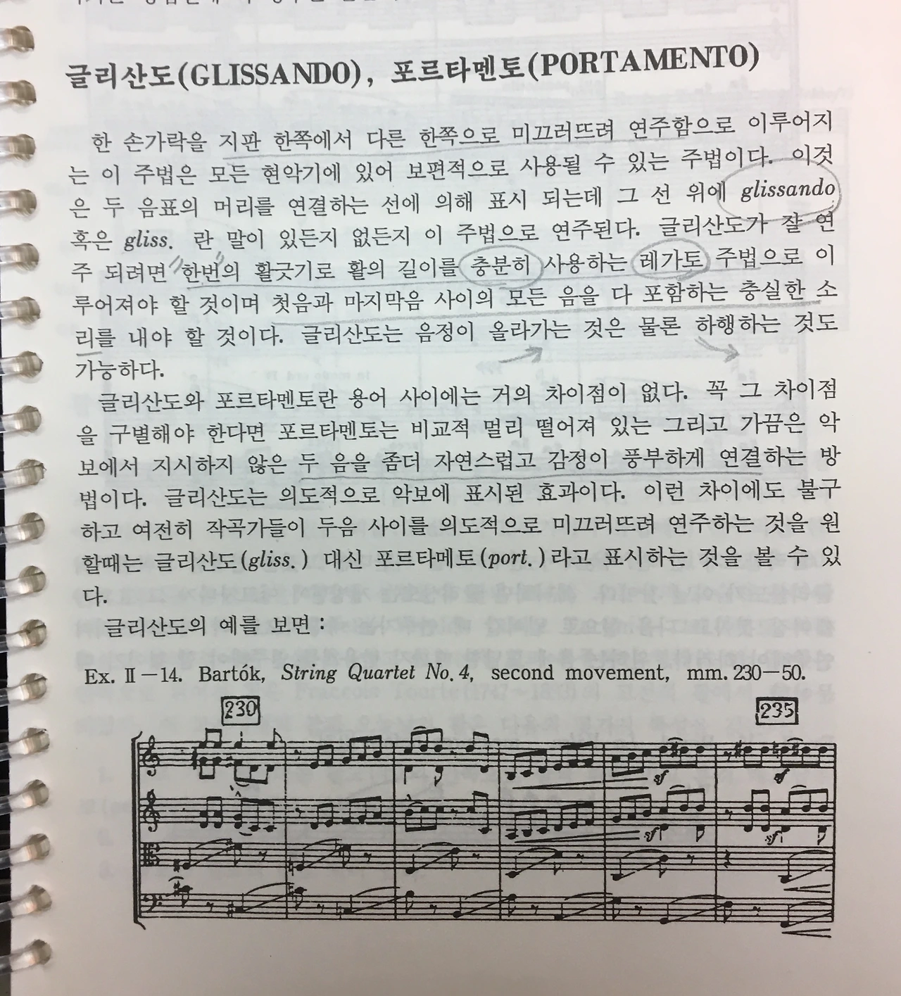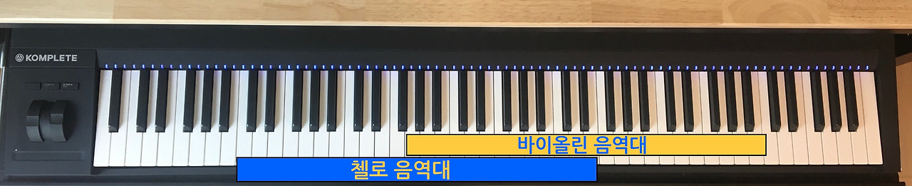 피아노에서 ' 솔파미레도 ' 5개음이 하행하며 연주한다면, 첼로에서는 '솔파미레도 ' 이 정확한 5개의 음 사이사이의 셀 수 없는, 계이름으로 명명되지 않는 수많은 음들까지도 모두 연주된다.