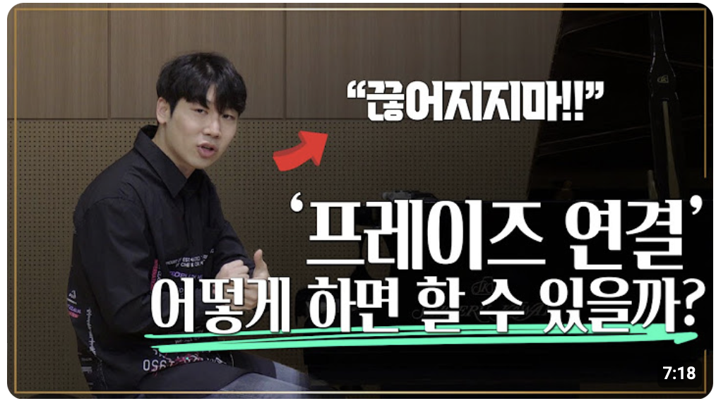 프레이즈에 대한 영상들을 유튜브로 공부했습니다. 하나의 프레이즈에 한 숨으로 연결되는 터치가 같은 결의 감정으로 연결이 되어야 한다고 생각하게 되었어요. 조성진이 쇼팽 발라드 4번을 연주하면서 곡이 이미 시작되고 있는 채 다가오는 첫음을 치는 장면을 보게 되었습니다. 이미 시작된 무형의 음을 손짓으로 가져오는 모습이었습니다. 느낌적인 느낌을 가져올 수 있나? 하면서 따라도 해 봤는데, 물론 저는 담지 못했습니다. 하지만 첫음, 첫마디 두 마디 왼손을 칠 때 단순한 음이지만, 그때 듣는 이의 마음을 붙들 수 있어야 한다고 생각했습니다. 인트로 왼손만 수백 번은 쳐본 것 같아요.