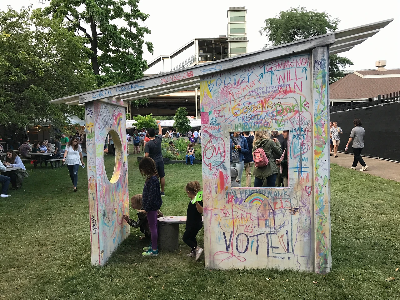 흐릿한 날씨 탓에 보슬비가 내렸지만 누구도 개의치 않는 것 같았다. 무대 앞에서 뮤지션들과 교감하며 음악을 즐기는 사람들도, 멀찍이 돗자리를 깔고 소풍을 즐기는 사람들도 모두 각자의 방법대로 여유로이 페스티벌을 즐기고 있었다. 종종 유모차를 탄 아기들과 잔디밭을 해맑게 뛰어다니는 어린 아이들도 눈에 띄었는데 주최측은 이들을 위해 공원 구석에 키드존을 마련해 놓기도 했다. 이곳에서 아이들은 흰 벽에 그림을 그리거나 잔디밭에 앉아 레고를 조립하며 나름으로 페스티벌에 참여한다. 이처럼 피치포크 뮤직 페스티벌은 합리적인 비용으로 모든 연령이 즐길 수 있는 페스티벌을 만들기 위해 노력한다. 그리고 이것은 지역 소상공인과 독립 아티스트 지원이라는 그들의 건강한 의도와 함께 많은 관객들을 페스티벌로 이끄는 이유 중 하나다.