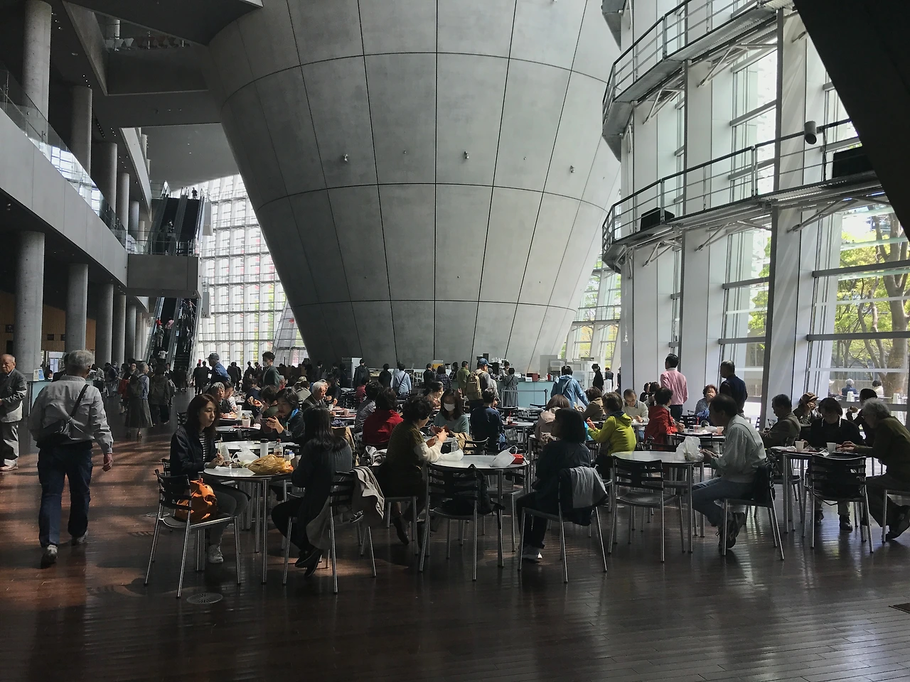 포근한 기온에 벚꽃이 흐드러지게 피는 계절에 도쿄를 찾았다. 세계 곳곳에 퍼진 일본의 예술 문화를 현지에서 보고 싶었다. 역설적이게도 지구 절반을 돌아 프랑스에 오니 옆 나라 일본의 예술을 접할 일이 한국에서보다 잦았다. 그들의 문화 마케팅에 혀를 내두른 적도 여러 번이고 그들의 영향력에 분을 삭인 적도 여러 번이다. 그래서 그들의 미술관이 몹시 궁금했던 차였다. 제일 먼저 롯폰기에 자리 잡은 국립신미술관National Art Center Tokyo을 찾았다. 국립신미술관은 도쿄국립근대미술관, 교토국립근대미술관, 국립서양미술관, 오사카국립미술관에 이은 일본의 5번째 국립미술관이다. 또한 일본에서 제일 큰 1만 4천 제곱미터에 달하는 전시공간은 매번 특별 전시로 채워진다. 지하철역과 연결된 입구를 통해 미술관의 로비로 바로 들어갈 수 있었다. 월요일 오전임에도 사람들이 붐볐다. 그중 일부는 유리로 된 외벽을 따라 놓인 의자에 앉아 바깥의 풍경을 바라보고 있었고, 또 다른 일부는 로비 중앙에 마련된 카페에서 식사와 차를 즐기고 있었다. 쉽게 비어 있는 의자를 발견하기 어려울 만큼 복작거렸다. 그러나 로비의 인파에 비해 정작 매표소와 전시장 입구에는 줄을 선 사람이 현저히 적었다. 기이하다면 기이할 수 있는 모습에 전시장으로 가던 발길을 돌려 나도 로비 한편에 자리를 잡았다.