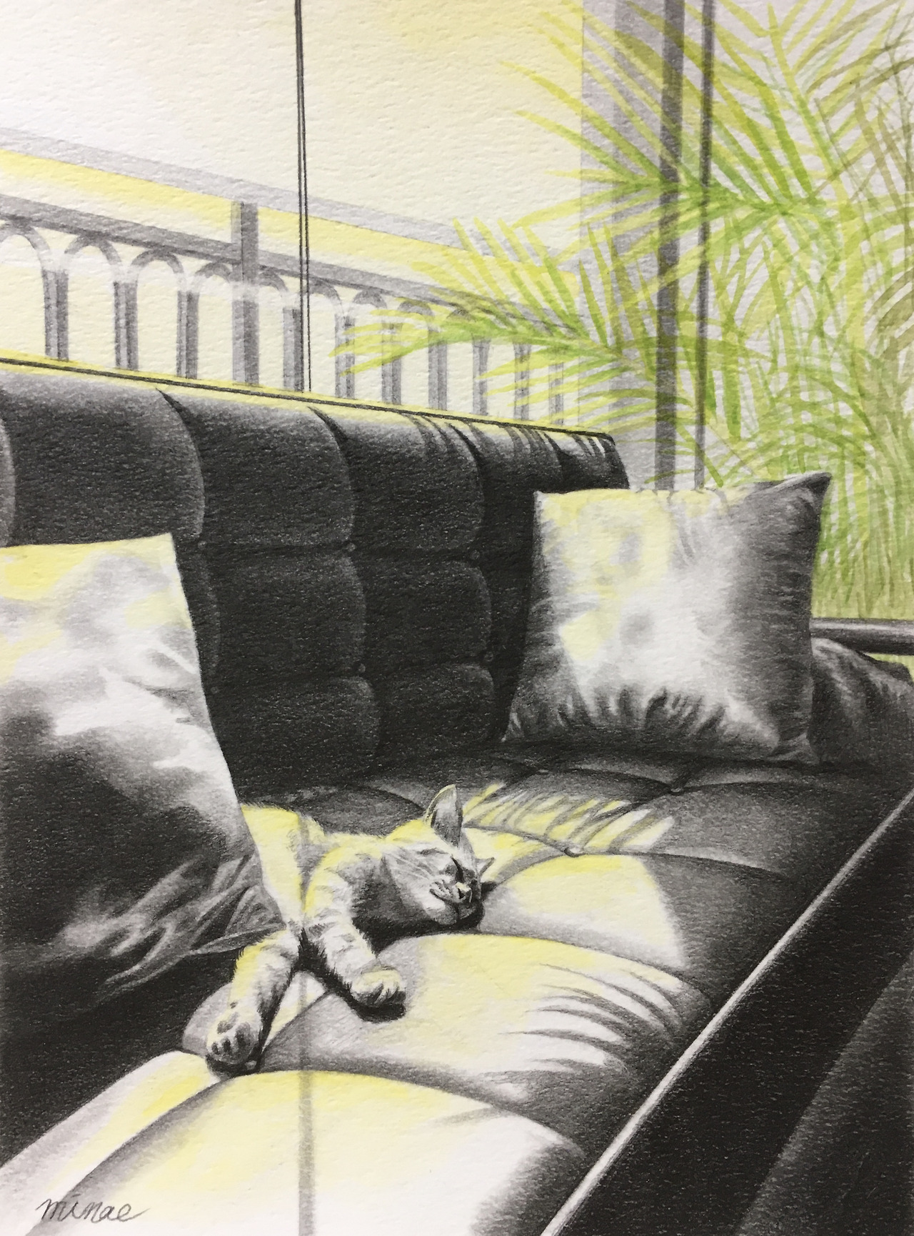 <쉼> 15.2x20.3cm_ sharppencil & watercolor on paper_ 2022_ 윤미내