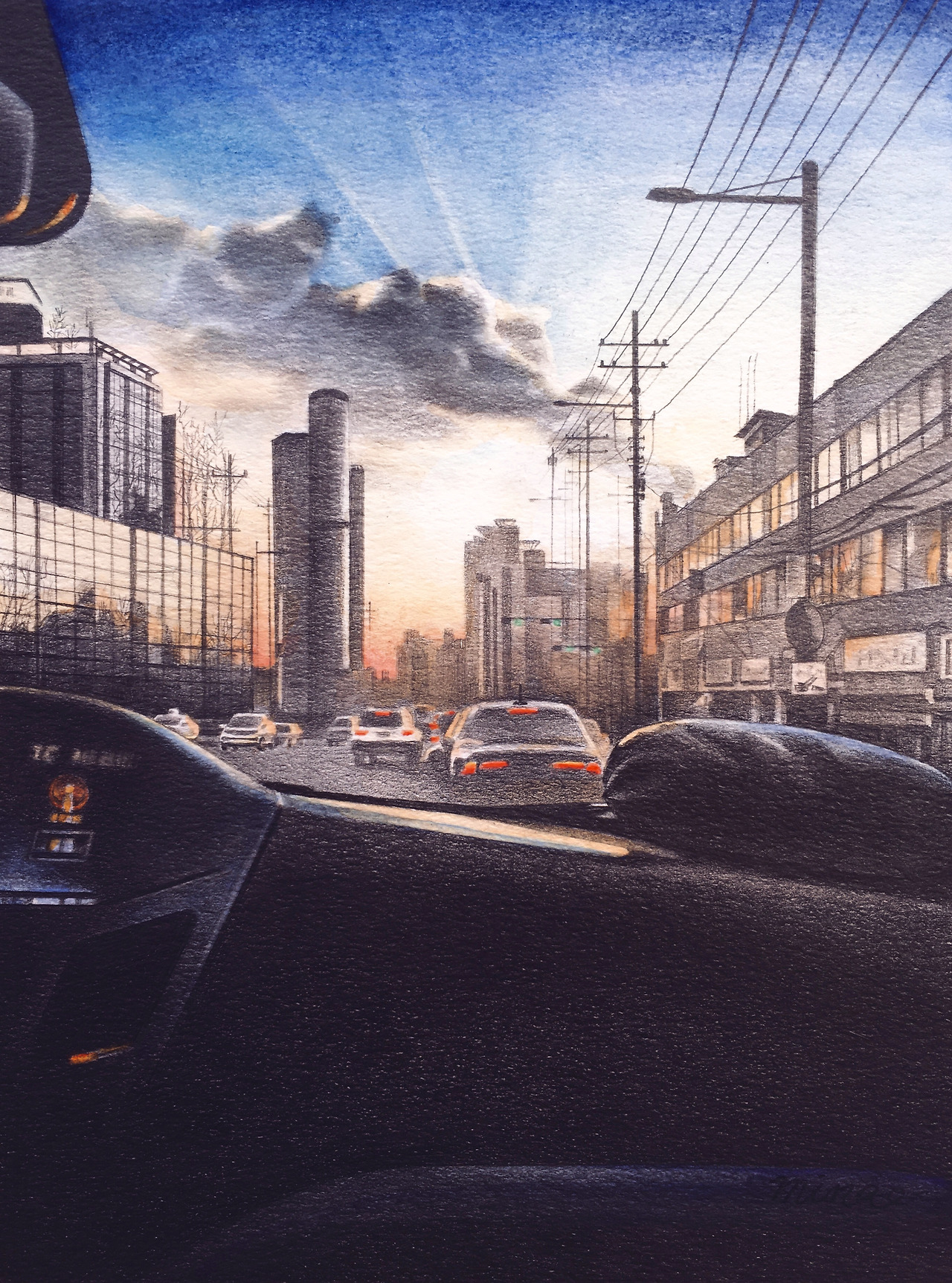 언제부터인가 개와 늑대의 절묘한 시간대와 밀폐된 공간인 차 안이라는 조합은, 현실에서 벗어나 추억을 반추하는 충분조건으로 자리 잡고 있다. 적어도 내게는 매일 같은 시간에 차로 출퇴근하는 이들처럼 쉽게 접할 수 있는 것이 아니기에 우연히 찾아오는 이 순간을 격렬히 반길 수밖에 없다.