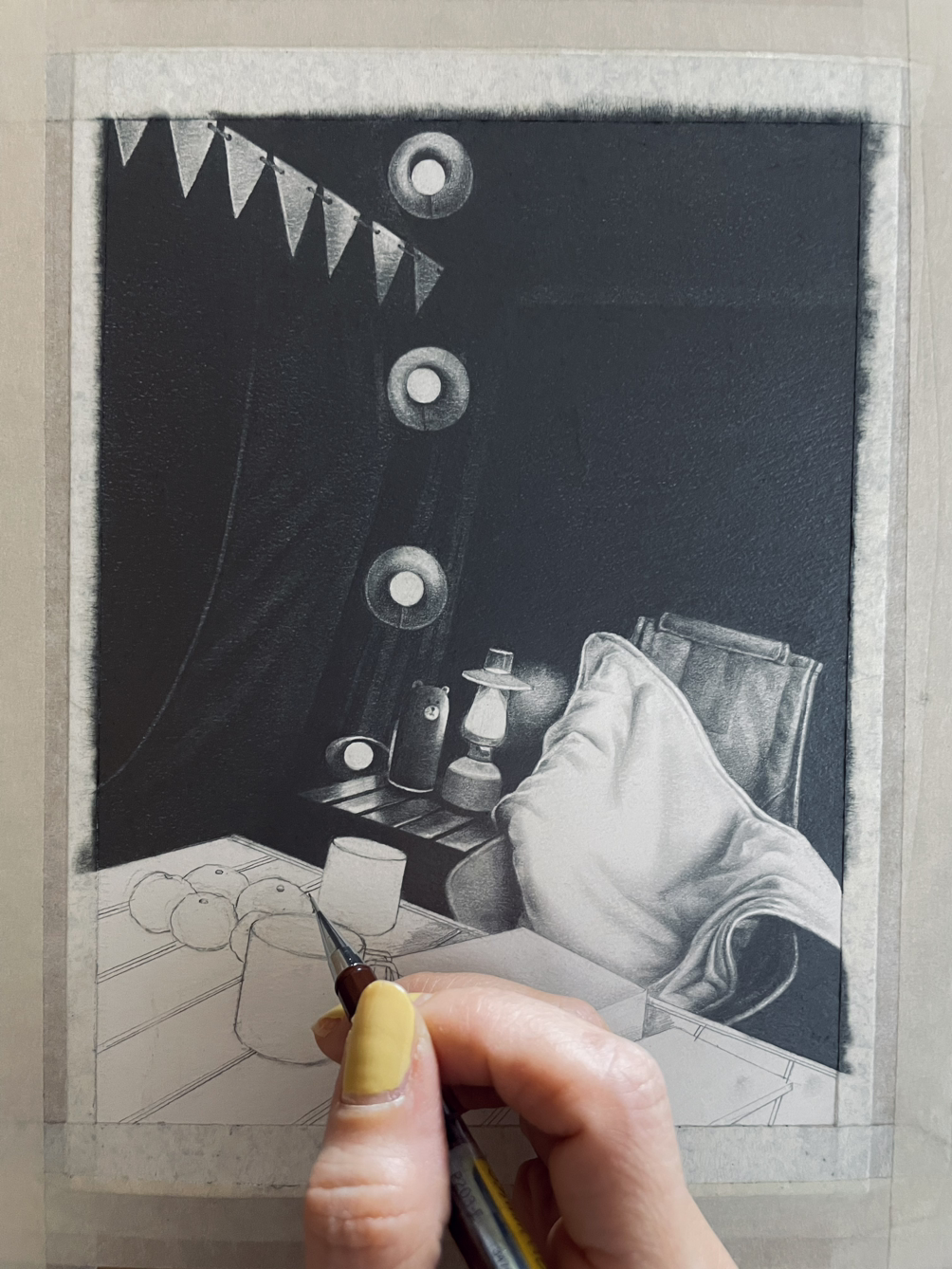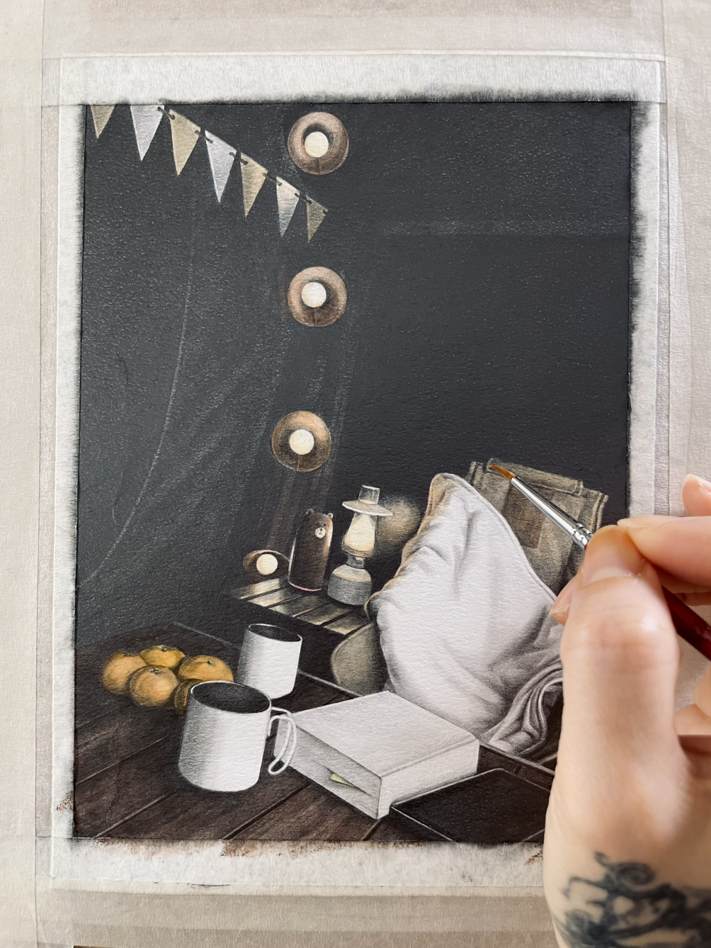 <쉼> 15.2x20.3cm_ sharppencil & watercolor on paper_ 2023_ 윤미내
