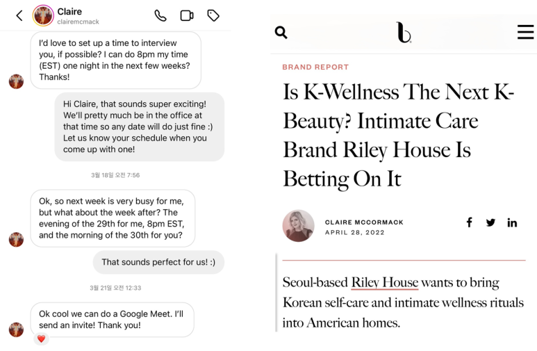 먼저 내 인생 처음으로 영어로 ‘직접’ 인터뷰를 했다. 온라인으로 콘텐츠를 꾸준히 만들었기에, 이를 통해 Organic 하게 인터뷰제안을 받았다. 무려 2곳에서. 하나는 Beauty Independent, 또 하나는 Allure US. PR을 업으로 해봤기에 ‘광고’ 가 아니라 ‘진정성’ 을 이야기했던 경험은 꽤나 뜻깊었다.
