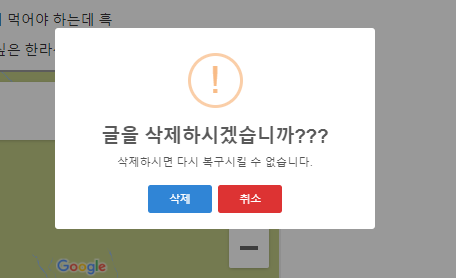 나미 씨, 이건 팝업(popup)이 아니라 모달(modal)로 처리해야 돼요. 그리고 얘는 얼럿(Alert) 창이고, 이건 컨펌(Confirm) 창입니다.