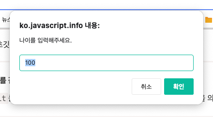 '즉각적인'이란 뜻을 가진 Prompt는 컴퓨터 언어로 사용자의 명령을 받아들일 준비가 되었음을 모니터에 나타내는 표시라고 구글 사전에서 안내하고 있다. 주로 사용자가 입력한 값을 받아오기 위한 용도로 사용한다. 값을 받아야 하는 입력 필드와 함께 확인/취소 버튼이 존재하며 취소를 누르면 null을 반환한다.