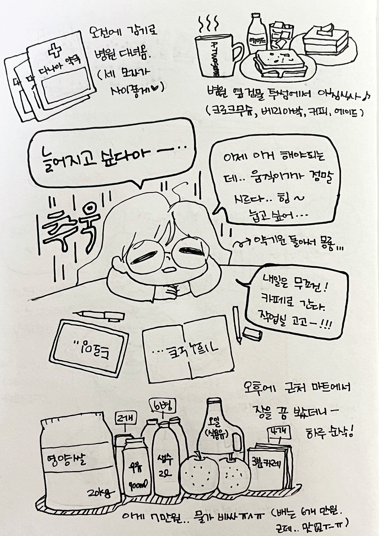 오늘은 좀 쉬고, 내일은 무조건 카페행이다. 초집중 모드로 호다닥 끝내고 마음 편하게 일요일 밤을 보내리라.