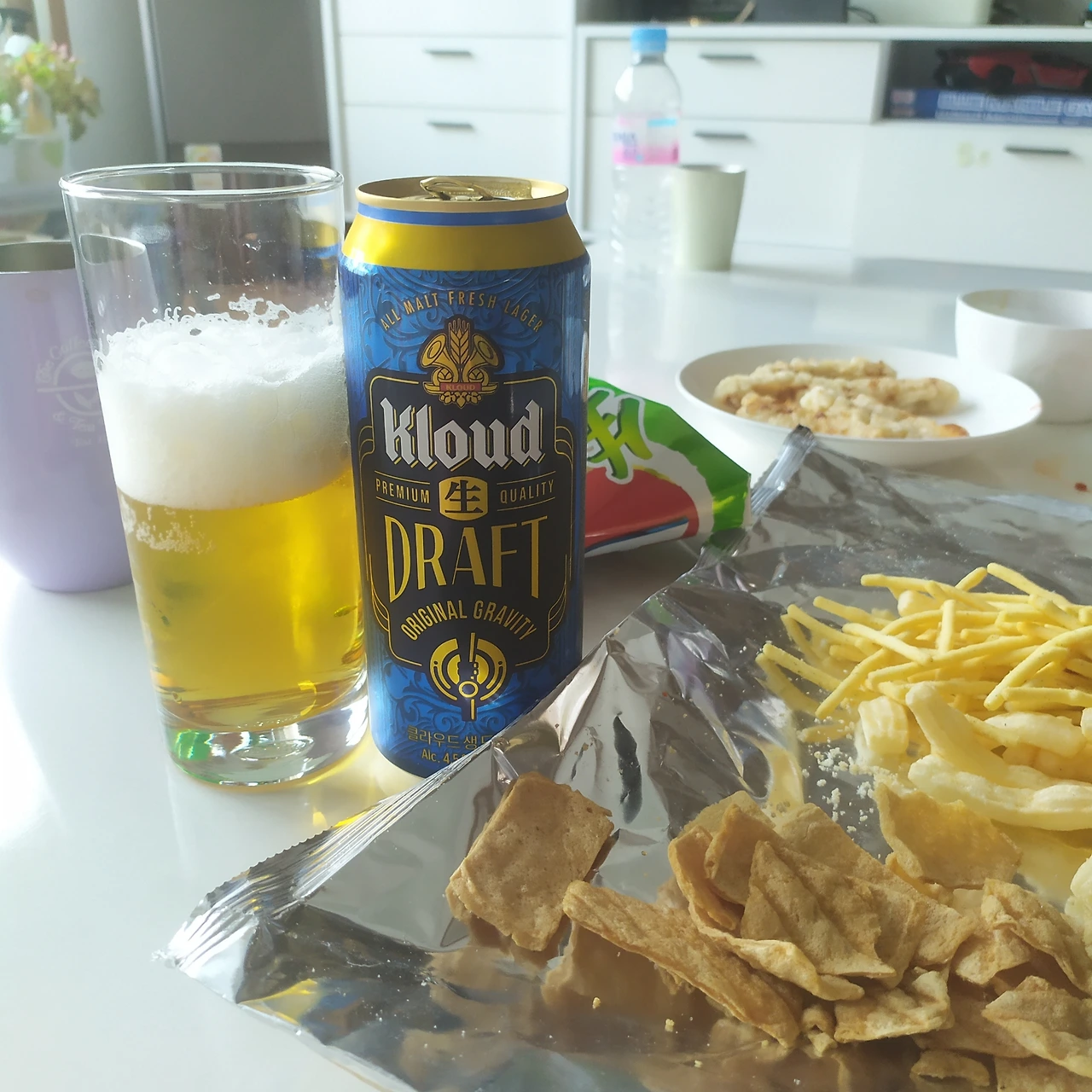 우리 방탄이들이 광고 모델인 클라우드 생 드래프트 맥주! 처음 광고를 보자마자 8캔을 호기롭게 사서 집으로 왔었죠. 시원하게 잘 마시고 재구매는 하지 않고 있습니다. 호호-