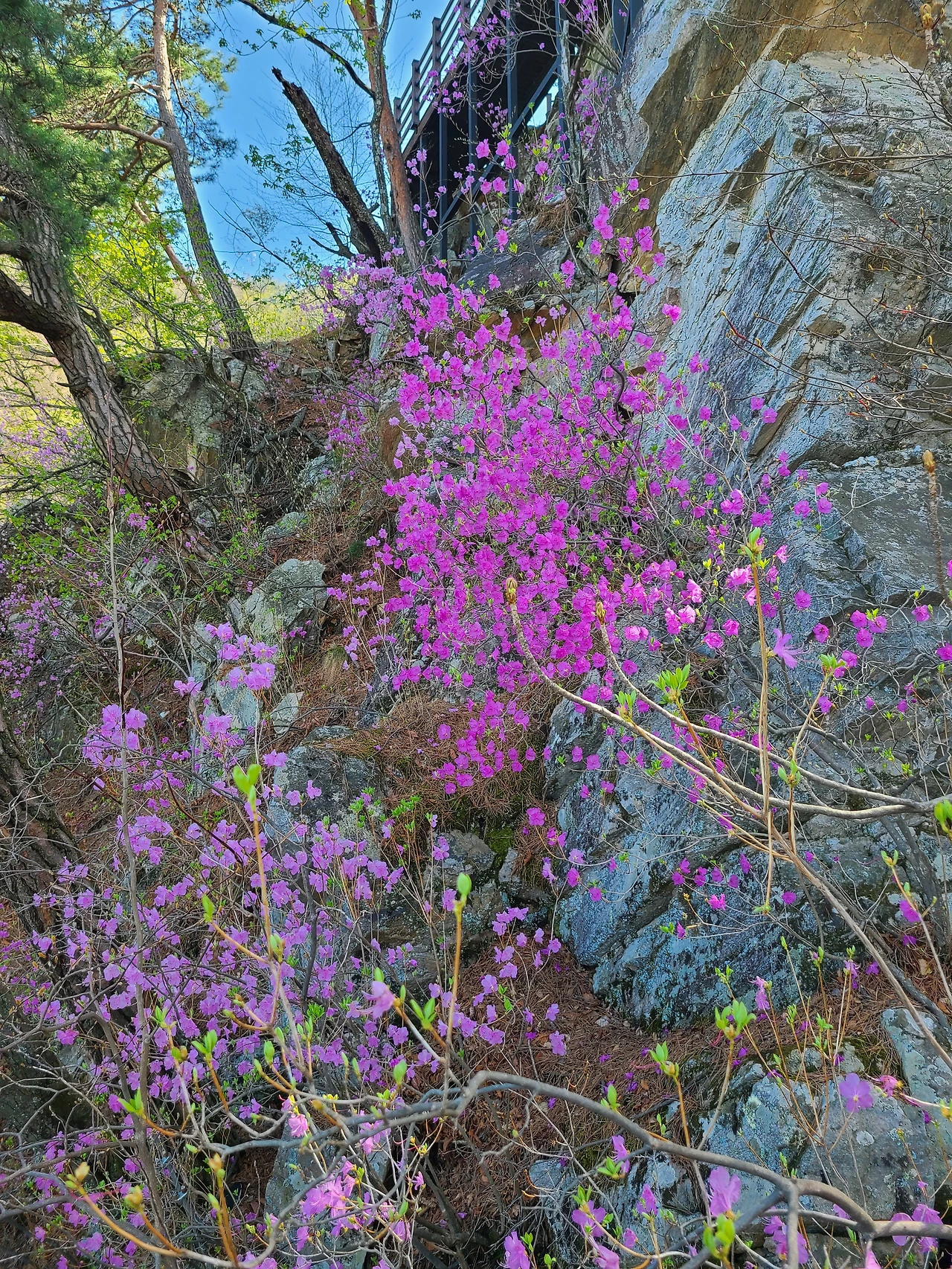 4월에 오른 춘천의 삼악산에도 진달래꽃이 피어 있었습니다.